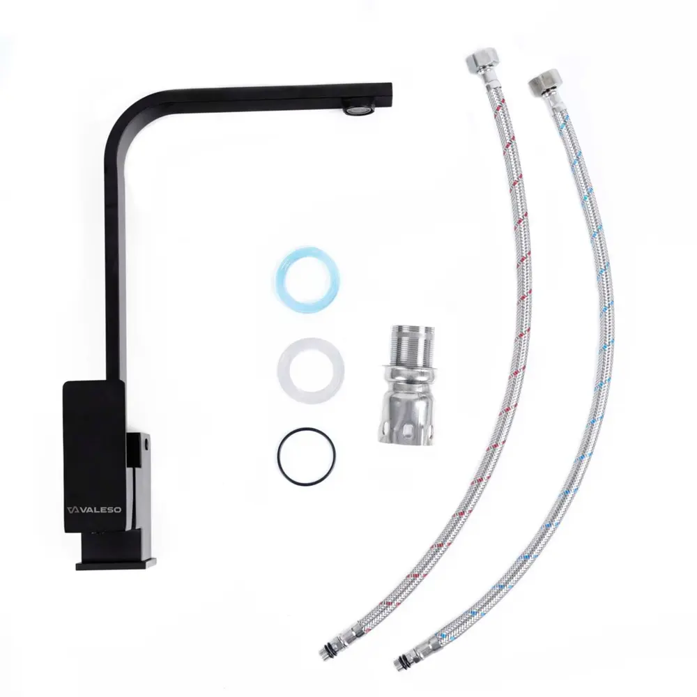 Смеситель VALESO 990 KT (Черный) – это практичный и стильный выбор для вашей кухни. Его функциональность, современный дизайн и качество помогут улучшить работу с водоснабжением на вашей кухне.