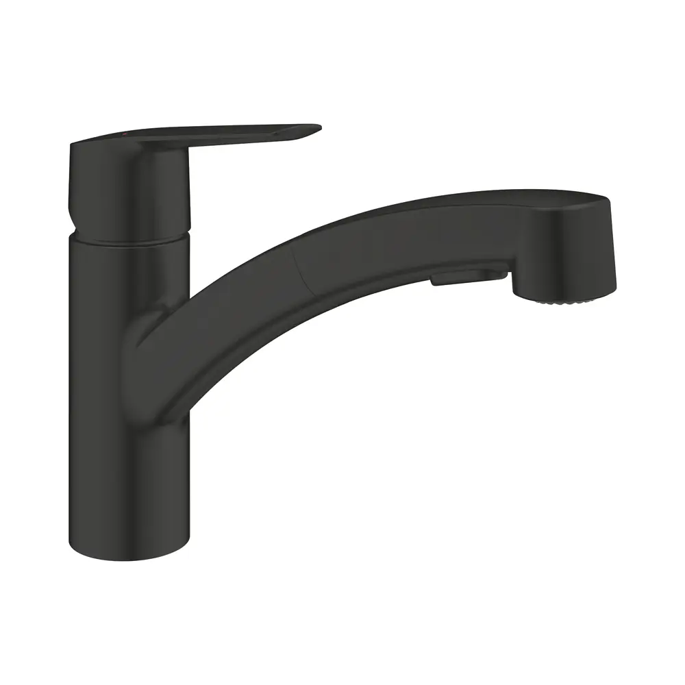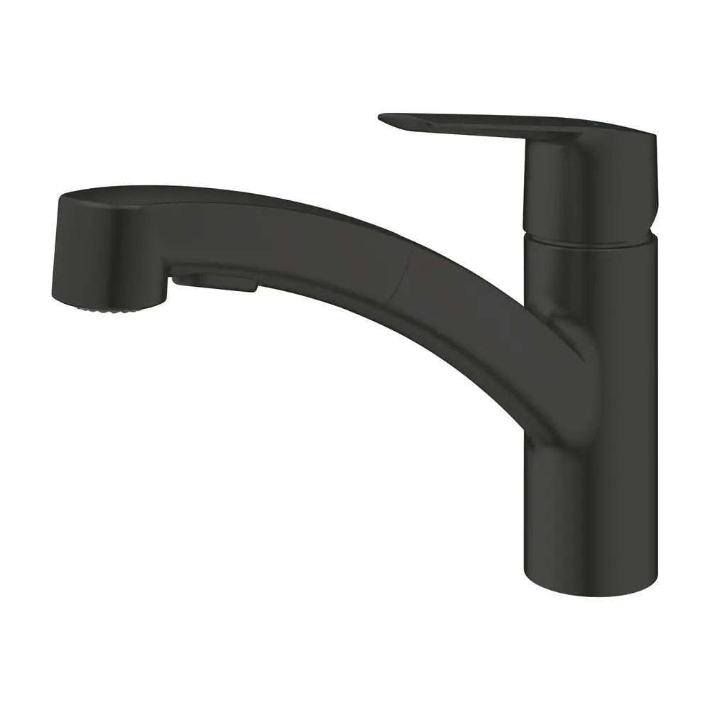 Смеситель однорычажный для кухонной мойки Grohe QuickFix Start 303072431 изготовлен из высококачественной пищевой латуни, устойчивой к воздействию коррозии, ударов и трещин. Черное матовое покрытие не только повышает долговечность смесителя, но и придает ему оригинальный внешний вид. Интенсивность водного потока и температура регулируются перемещением рычага. Подключение воды происходит через гибкие шланги с диаметром подключения 3/8". Отличительной особенностью является выдвижное излияние, позволяющее увеличить радиус.