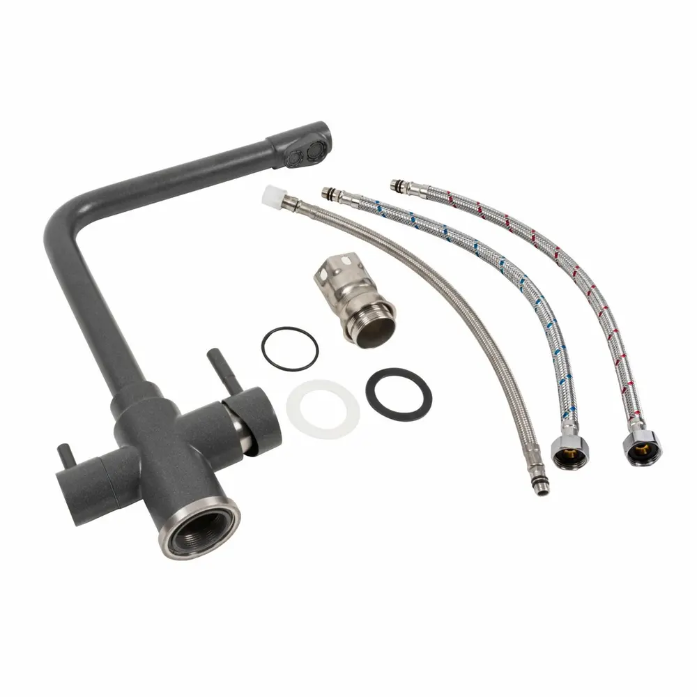 В комплектацию входят гибкая подводка и крепеж, обеспечивая вам все необходимое для быстрого и легкого монтажа. И не забудьте о наших картриджах и гибких шлангах, которые также доступны для приобретения. Ваша кухня заслуживает лучшего, выбирайте Platinum KT 8201 Морион и почувствуйте роскошь в каждой капле воды!