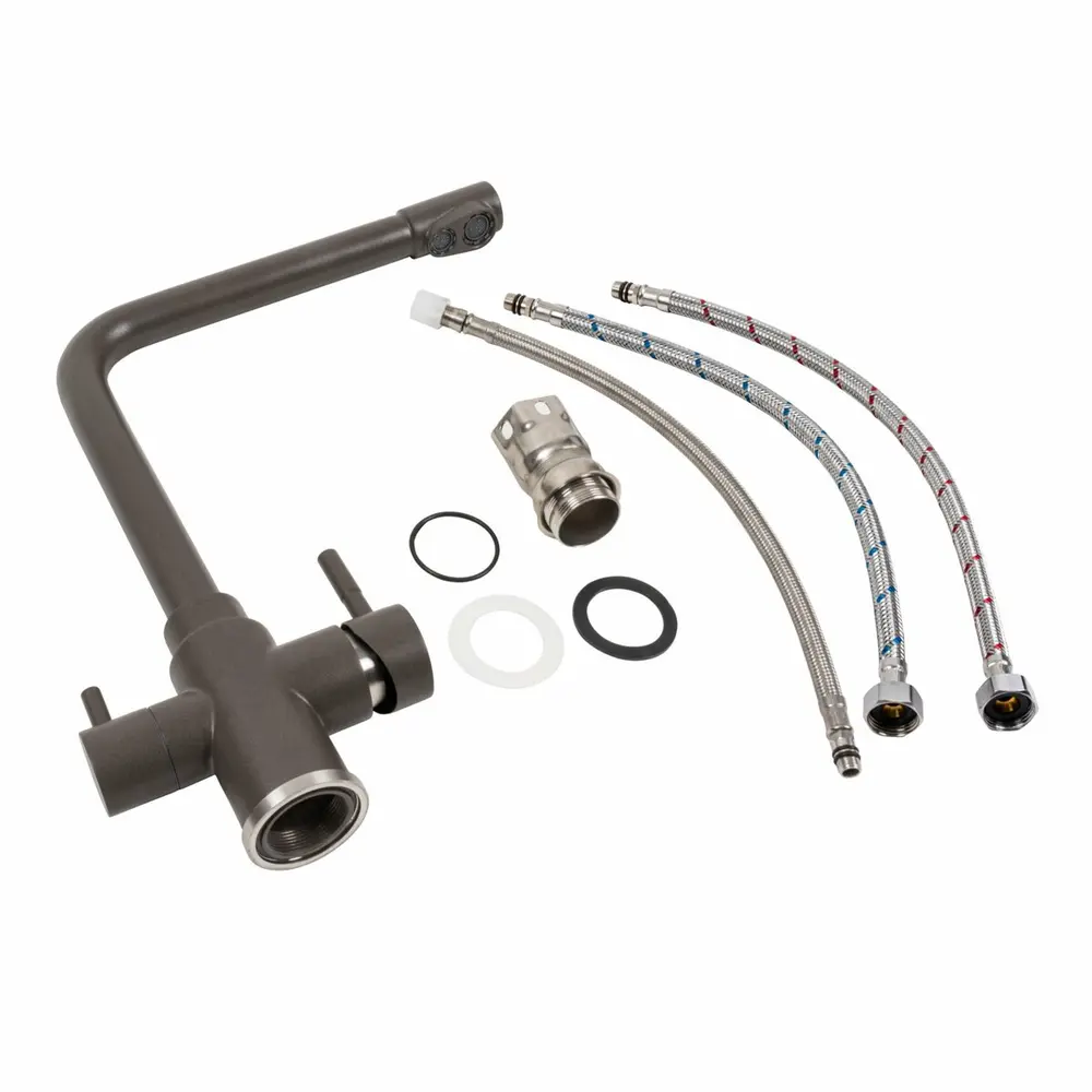 В комплектацию входят гибкая подводка и крепеж, обеспечивая вам все необходимое для быстрого и легкого монтажа. И не забудьте о наших картриджах и гибких шлангах, которые также доступны для приобретения. Ваша кухня заслуживает лучшего, выбирайте Platinum KT 8201 Темная скала и почувствуйте роскошь в каждой капле воды!