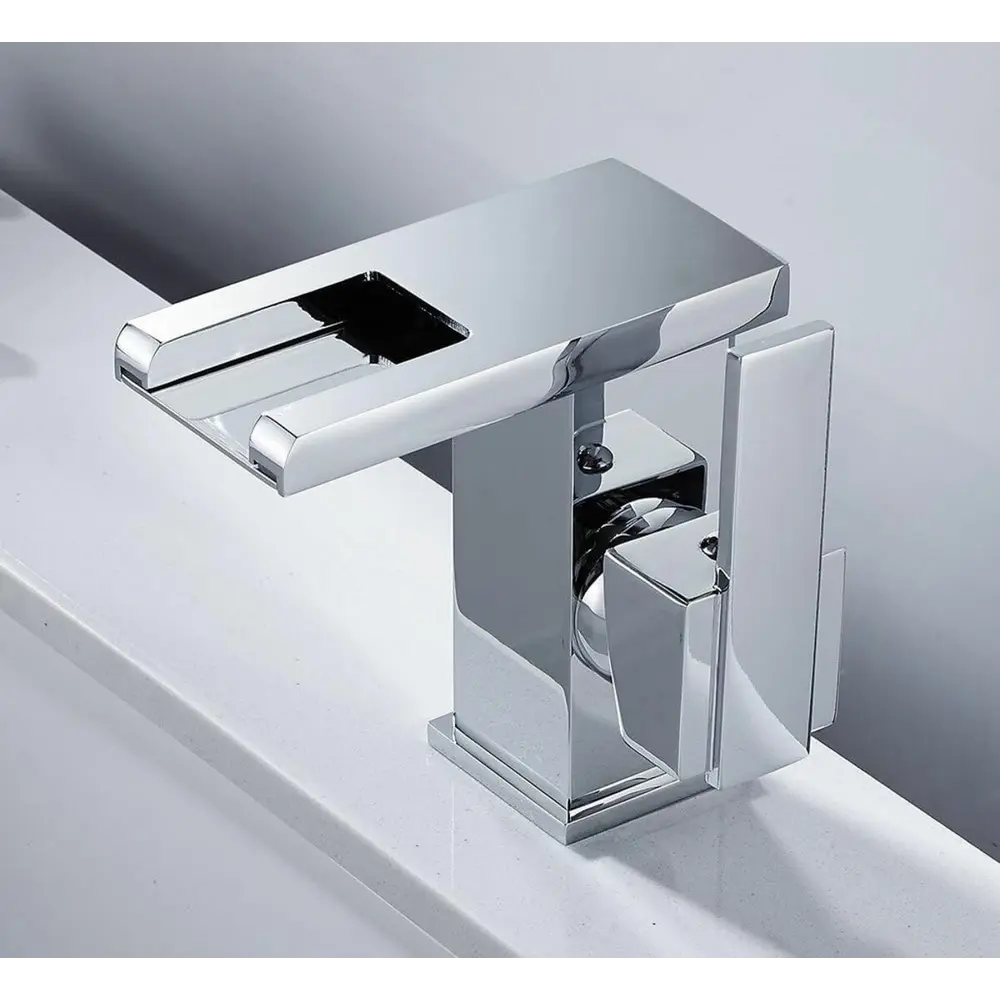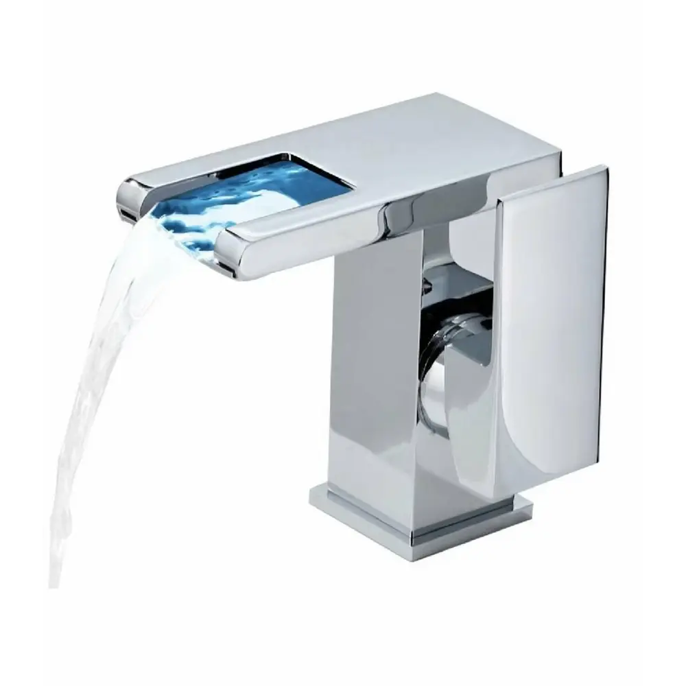 Дизайнерський змішувач-водоспад з нержавіючої сталі не тільки вражає своїм сучасним виглядом, а й забезпечує зручне та безпечне користування завдяки триколірному LED-підсвічуванню, яке змінюється відповідно до температури води: