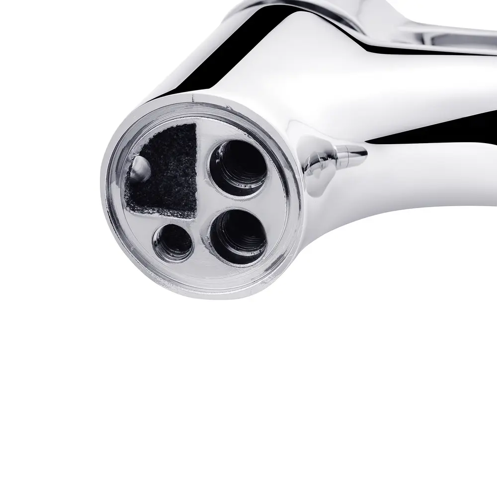 В этом смесителе установлен фирменный картридж с керамическими пластинами диаметром 35 мм. С помощью эргономичного рычажка он точно и быстро регулирует температуру и напор воды. Рабочий механизм без труда выдерживает перепады давления воды. Благодаря поворотному аэратору можно задавать комфортное направление потока.