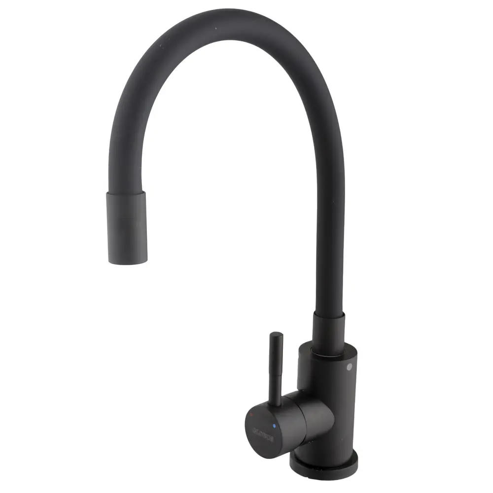 Змішувач для кухні Globus Lux ALPEN SBT1-203SB-BB чорний матовий корпус з гнучким чорним гофровиливом, Нержавіюча сталь, на гайці