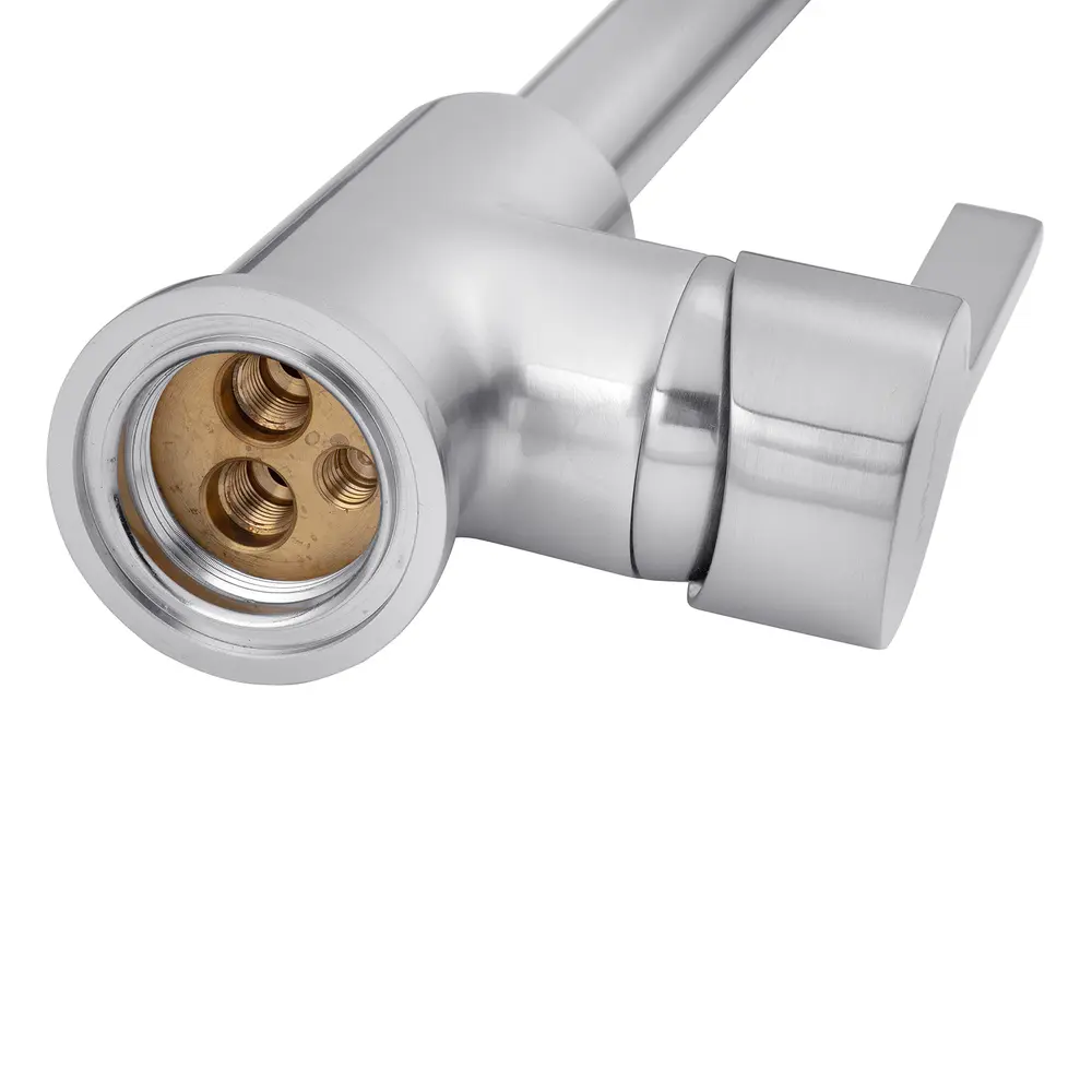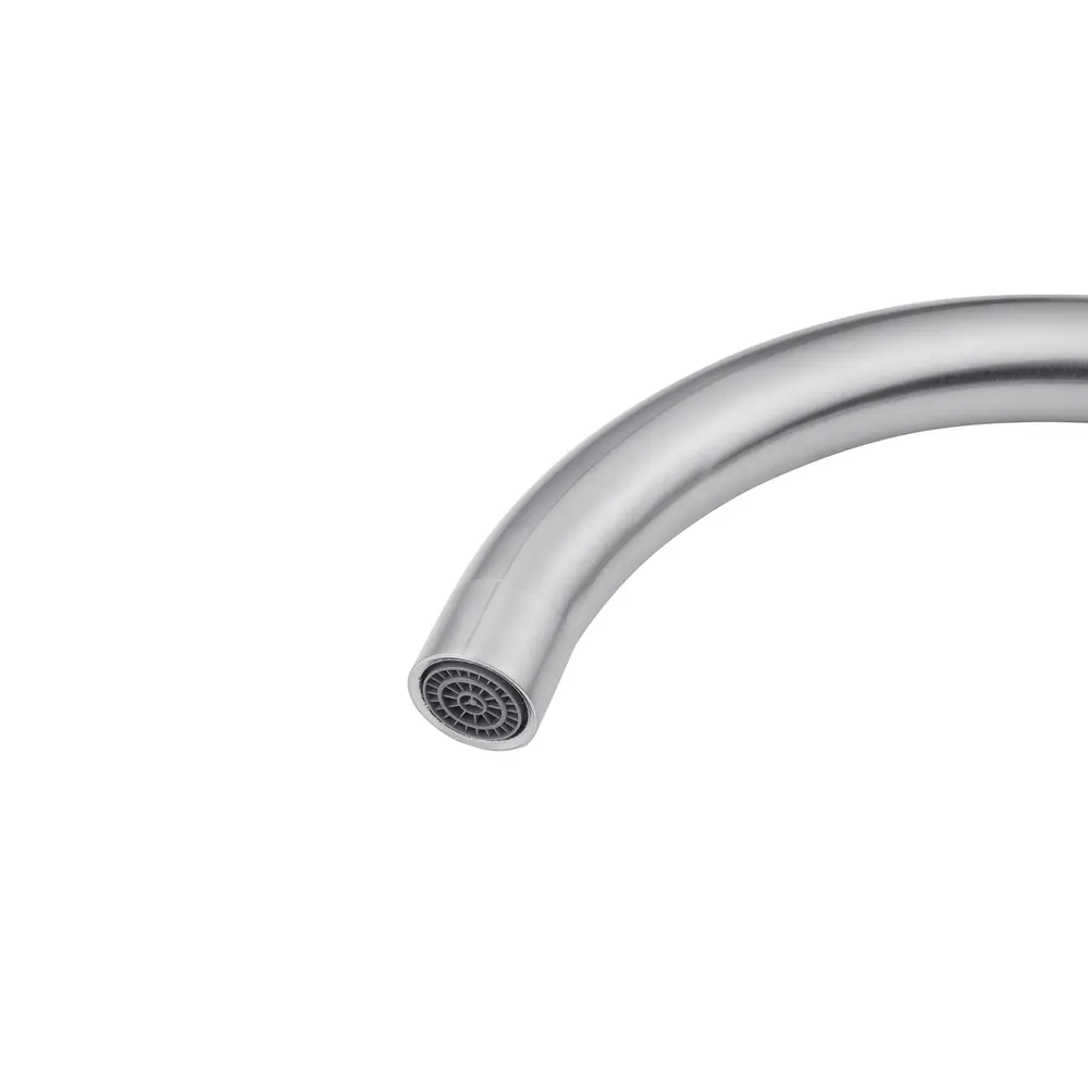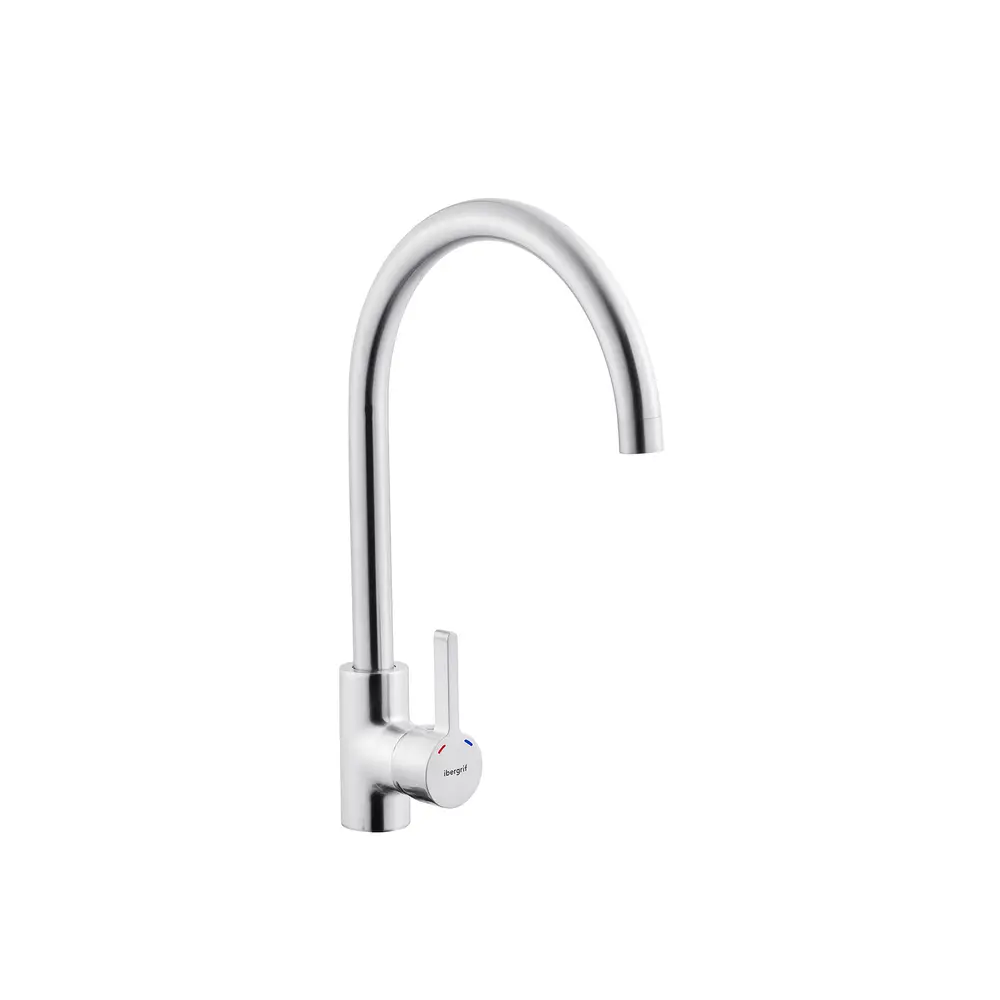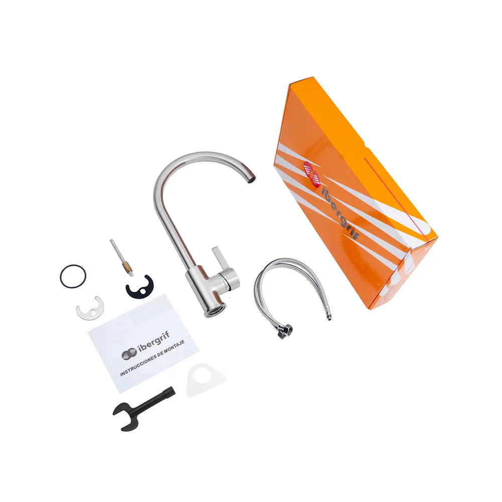 Змішувач для кухні Ibergrif M22118A має класичне виконання, тому підійде тим, кому потрібний простий та якісний кран для кухні. Представлений кухонний кран має надійний керамічний картриджний 35 мм. Ця конструкція відрізняється високою стійкістю до зношування незалежно від інтенсивності використання. Кран покритий фарбою під колір нержавіючої сталі, що надійно захищає основний матеріал від несприятливого впливу вологи та механічних пошкоджень. Підключається до трубопроводу двома гнучкими підводками, які йдуть в комплекті разом з елементом кріплення, аератором і гумовими прокладками.