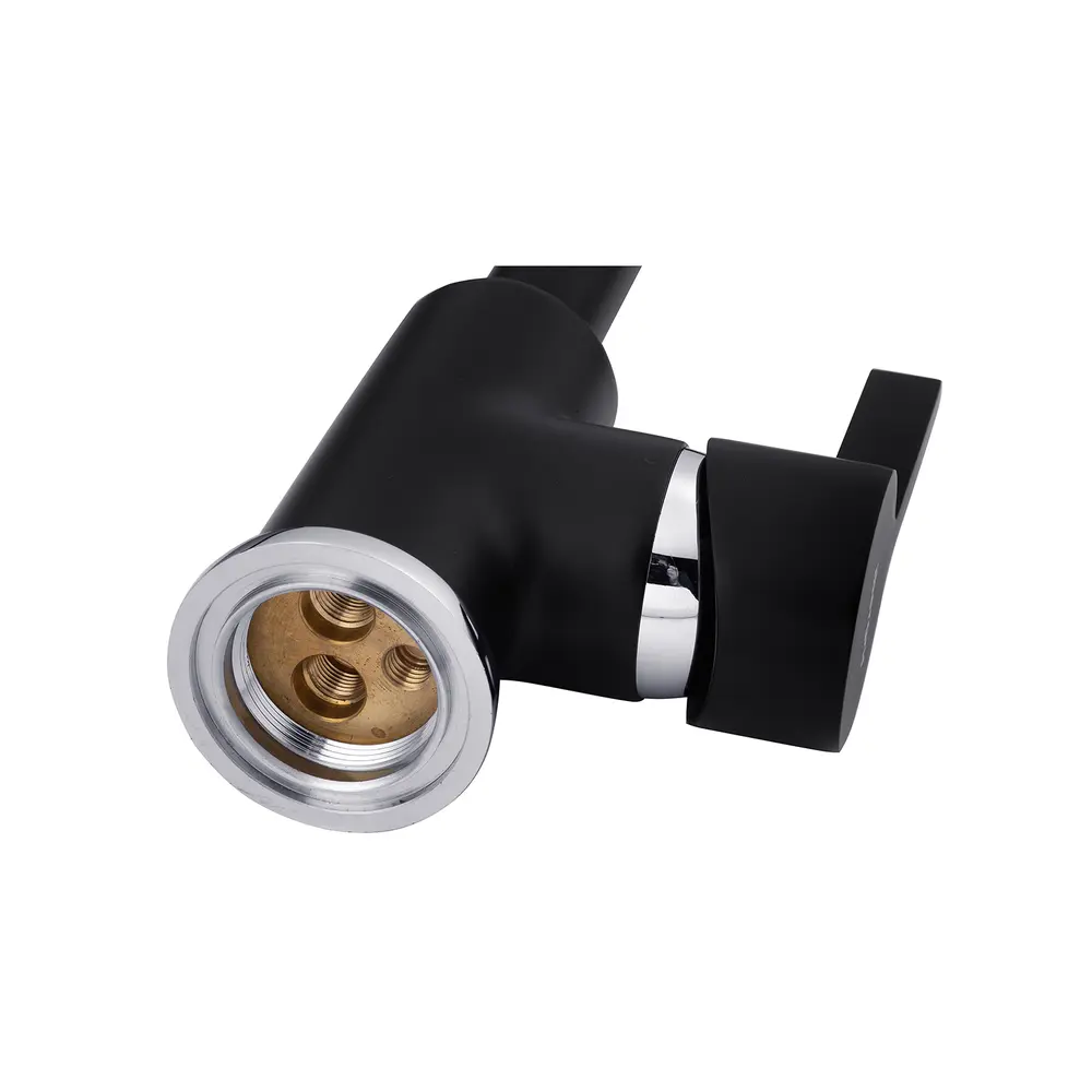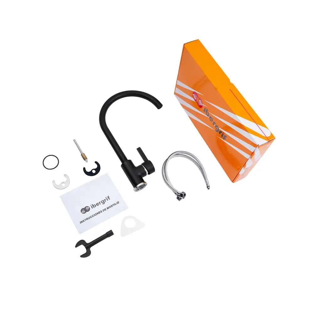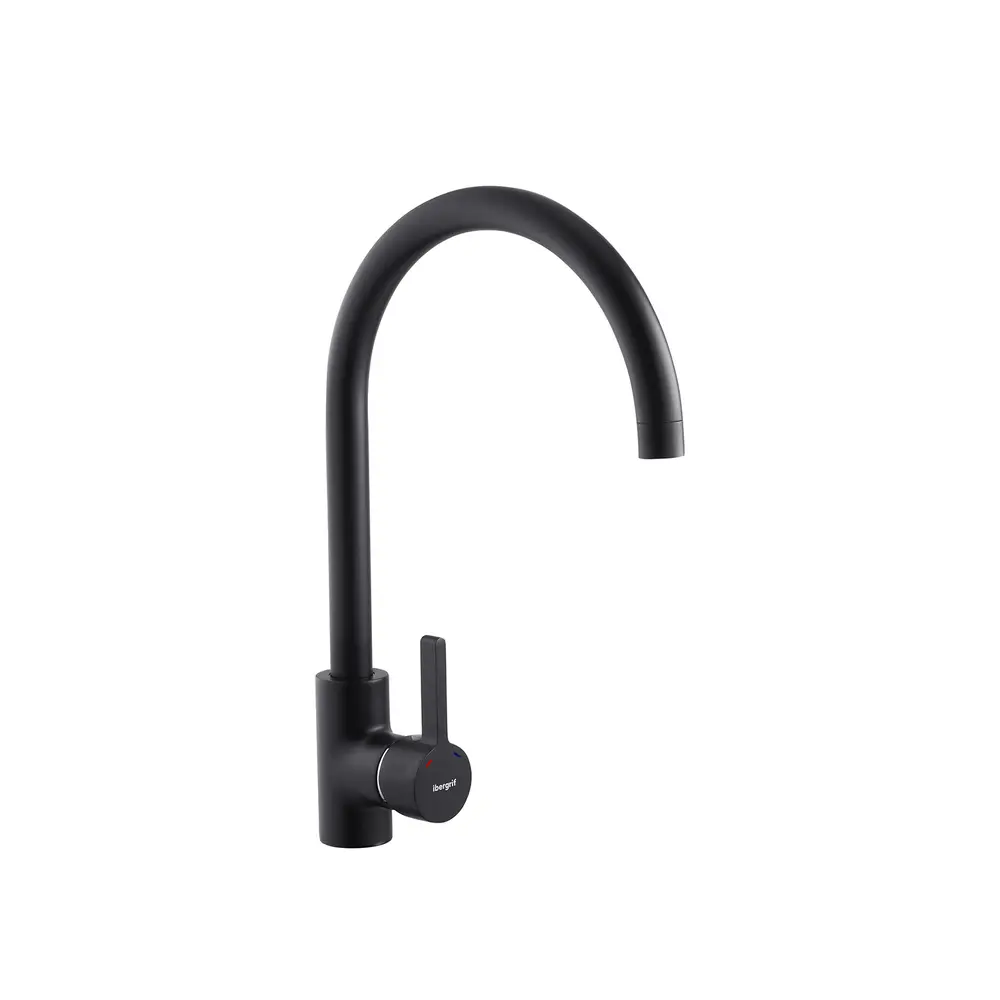 Змішувач для кухні Ibergrif M22118B має класичне виконання, тому підійде тим, кому потрібний простий та якісний кран для кухні. Представлений кухонний кран має надійний керамічний картриджний 35 мм. Ця конструкція відрізняється високою стійкістю до зношування незалежно від інтенсивності використання. Кран покритий фарбою чорного кольору, що надійно захищає основний матеріал від несприятливого впливу вологи та механічних пошкоджень. Підключається до трубопроводу двома гнучкими підводками, які йдуть в комплекті разом з елементом кріплення, аератором і гумовими прокладками.