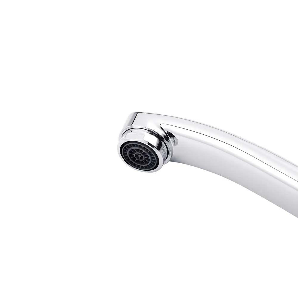 Змішувач для кухні Ibergrif Roma M14450 відрізняється нестандартним дизайном, завдяки хромованому покриттю підійде практично до будь-якого інтер'єру. Корпус кухонного змішувача виконаний з латуні, який не піддається корозії, не виділяє шкідливих речовин для людини і добре витримує різкі температурні перепади. Як запірний клапан використовується керамічний картридж 40 мм. Перевага цього пристрою в тому, що можливо швидко відкрити/закрити подачу та налаштувати оптимальну температуру води за допомогою однієї руки. За змішування води відповідає керамічний картридж 40 мм. Управління здійснюється класичною поворотною рукояткою.