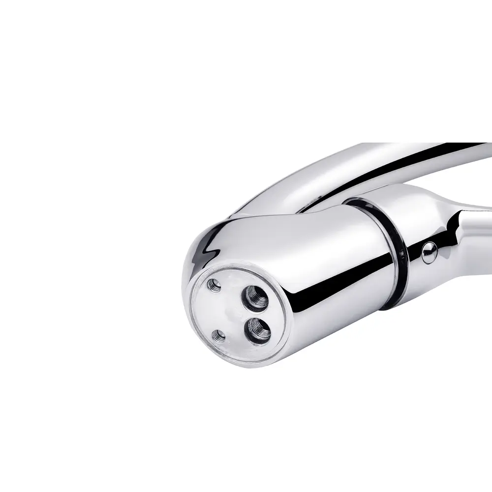 Змішувач для кухні Ibergrif Roma M14850 відрізняється привабливим зовнішнім виглядом, завдяки хромованому покриттю підійде практично до будь-якого інтер'єру. Корпус кухонного змішувача виконаний з латуні, який не піддається корозії, не виділяє шкідливих речовин для людини і добре витримує різкі температурні перепади. Як запірний клапан використовується керамічний картридж 40 мм. Перевага цього пристрою в тому, що можливо швидко відкрити/закрити подачу та налаштувати оптимальну температуру води за допомогою однієї руки.