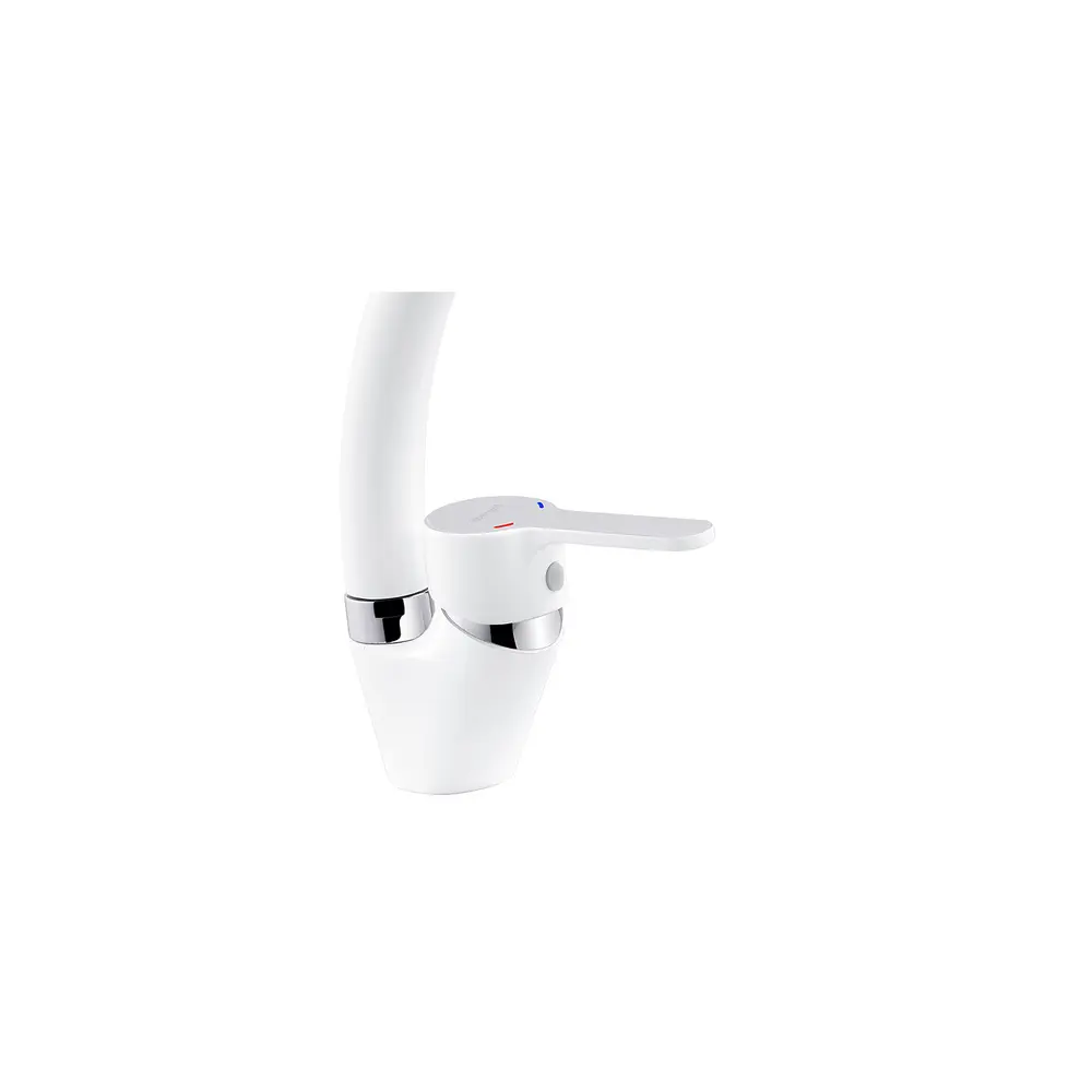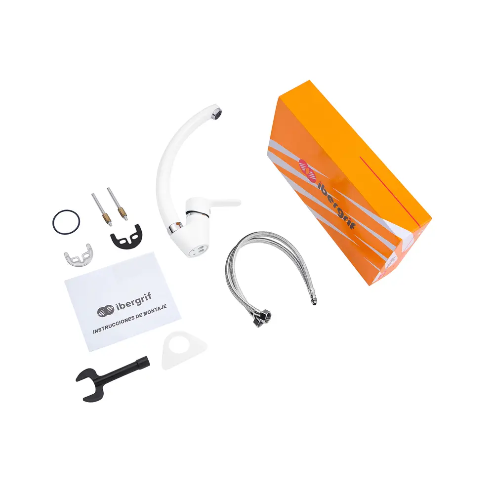 Змішувач для кухні Ibergrif Square M14822W відрізняється привабливим зовнішнім виглядом, завдяки білому кольору із хромованими вставками підійде практично до будь-якого інтер'єру. Корпус кухонного змішувача виконаний з латуні, який не піддається корозії, не виділяє шкідливих речовин для людини і добре витримує різкі температурні перепади. Як запірний клапан використовується керамічний картридж 35 мм. Перевага цього пристрою в тому, що можливо швидко відкрити/закрити подачу та налаштувати оптимальну температуру води за допомогою однієї руки.