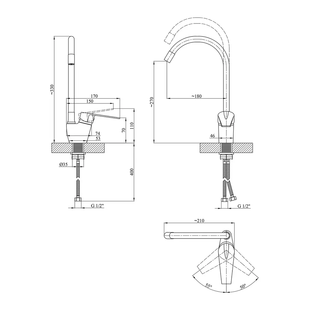 Змішувач, гнучка підводка, кріплення, інструкція.