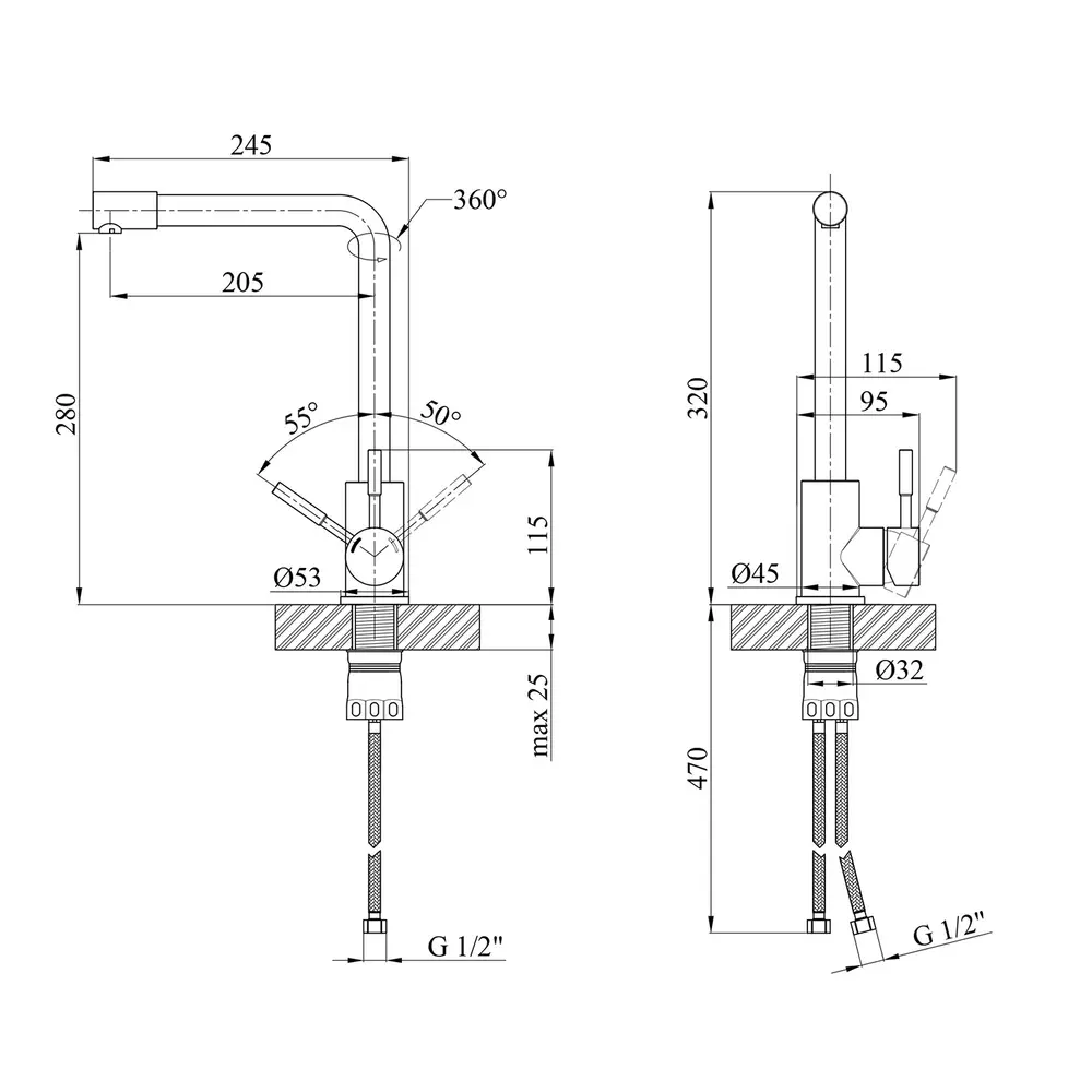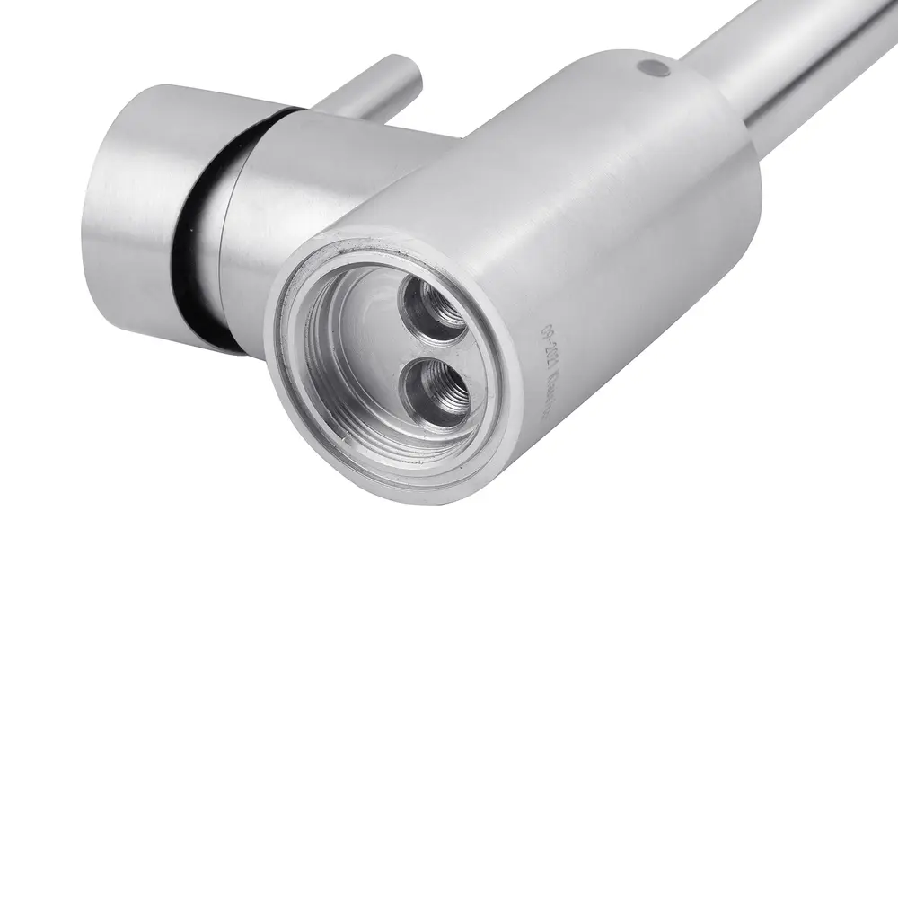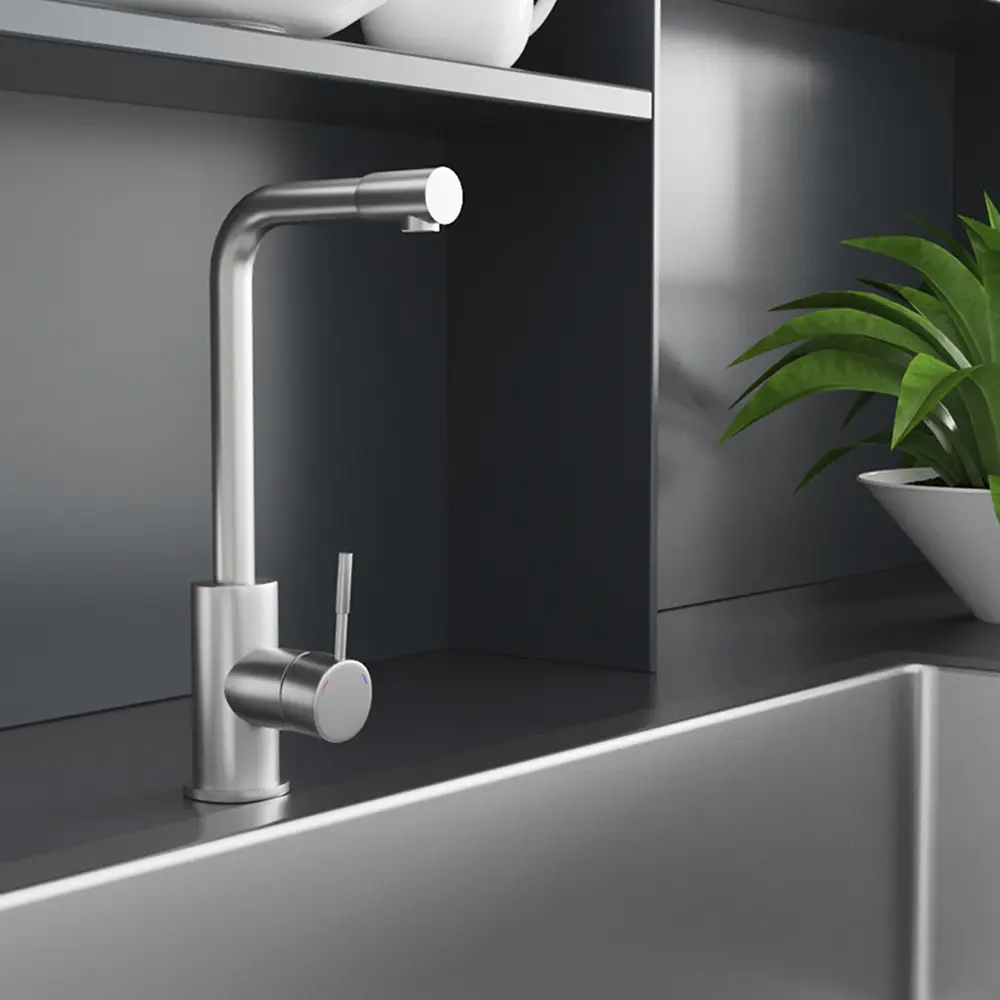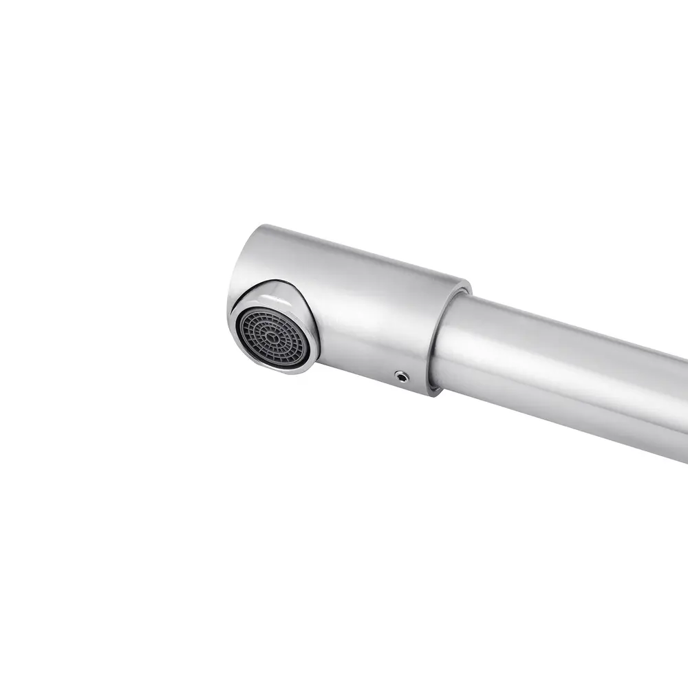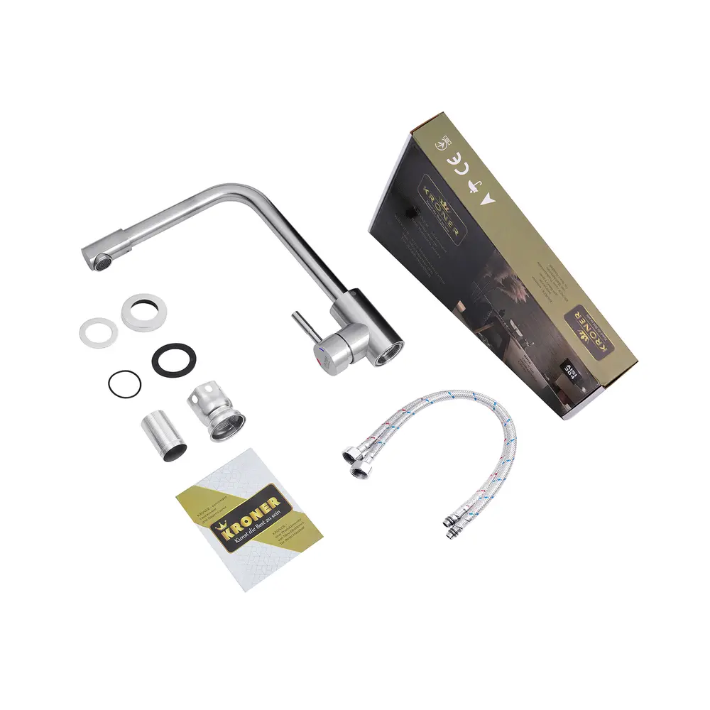 Кухонні змішувачі від KRONER – це німецька якість, технологія та надійність. Сучасний дизайн стане вдалим доповненням інтер’єру кухні. Виготовленні з якісних матеріалів, що не піддаються корозії, легкість у збірці не завдасть клопоту при монтажу та використанні. Мають поворотний вилив і встановлюється на один отвір із підведенням води за допомогою гнучких шлангів М10х1/2". Шланги для підключення входять у комплект. Данна модель виготовлена з нержавіючої сталі AISI 304.