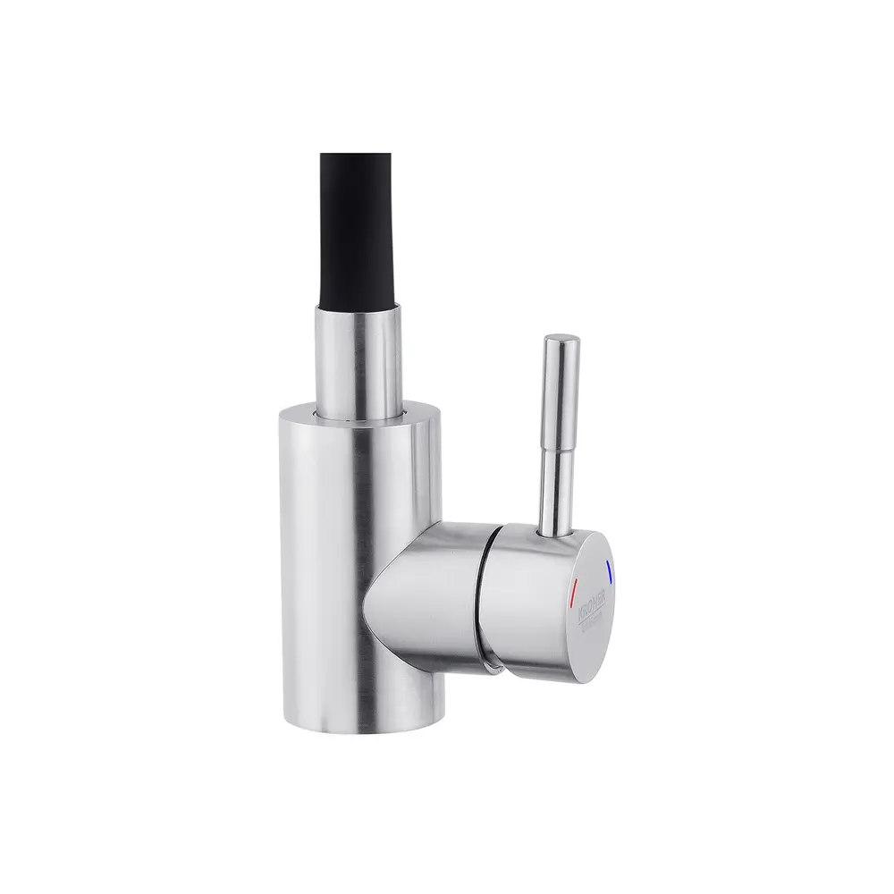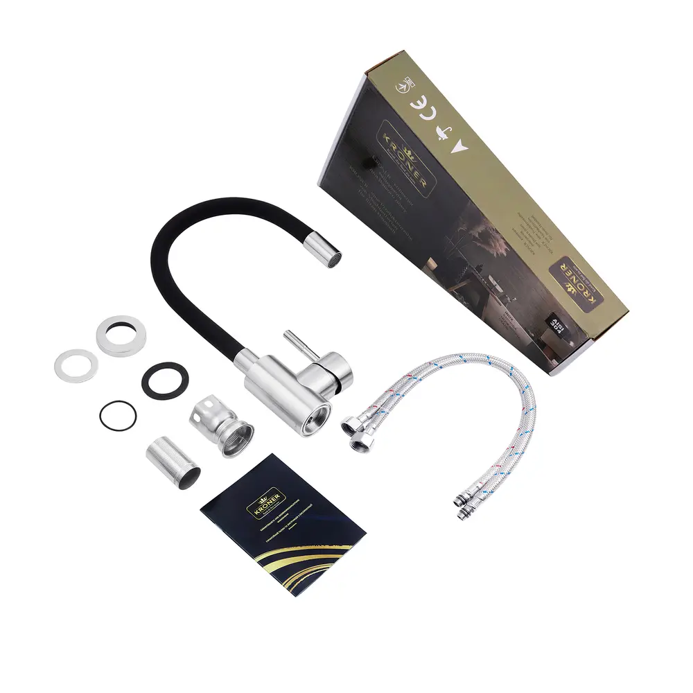 Кухонні змішувачі від KRONER – це німецька якість, технологія та надійність. Сучасний дизайн стане вдалим доповненням інтер’єру кухні. Виготовленні з якісних матеріалів, що не піддаються корозії, легкість у збірці не завдасть клопоту при монтажу та використанні. Мають поворотний вилив і встановлюється на один отвір із підведенням води за допомогою гнучких шлангів М10х1/2". Шланги для підключення входять у комплект. Данна модель виготовлена з нержавіючої сталі AISI 304.