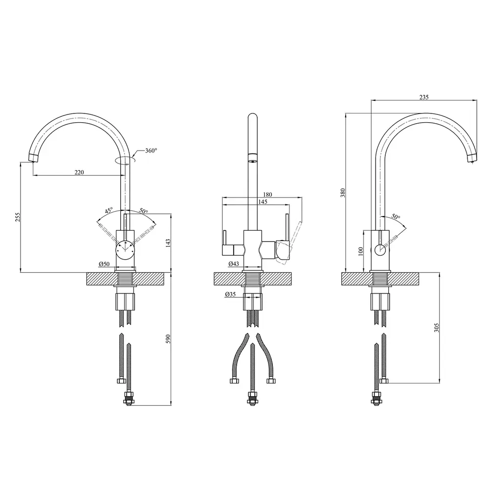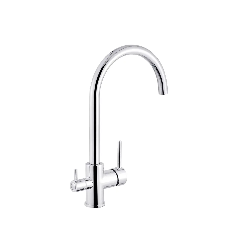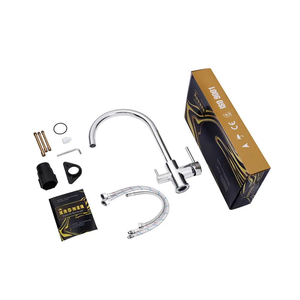 Кухонні змішувачі від KRONER – це німецька якість, технологія та надійність. Сучасний дизайн стане вдалим доповненням інтер’єру кухні. Виготовленні з якісних матеріалів, що не піддаються корозії, легкість у збірці не завдасть клопоту при монтажу та використанні. Мають поворотний вилив і встановлюється на один отвір із підведенням води за допомогою гнучких шлангів М10х1/2". Шланги для підключення входять у комплект. Данна модель виготовлена з латуні.