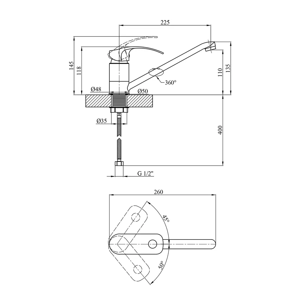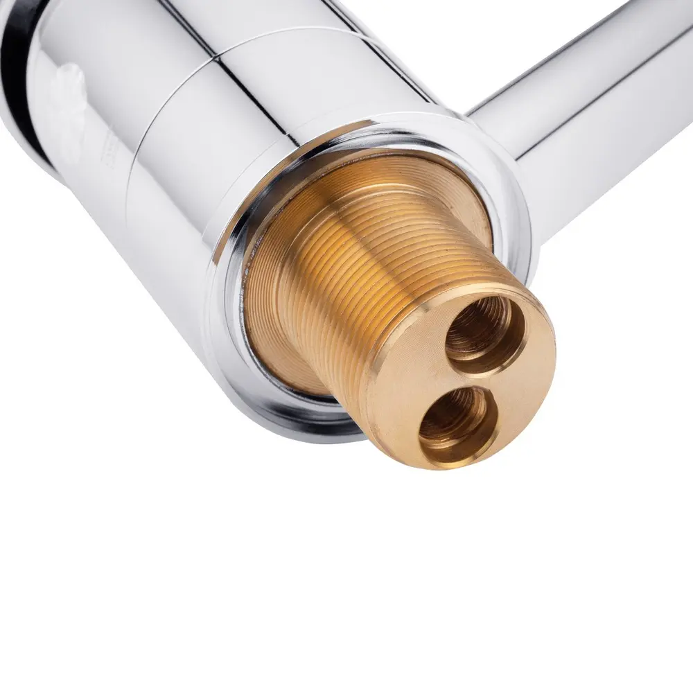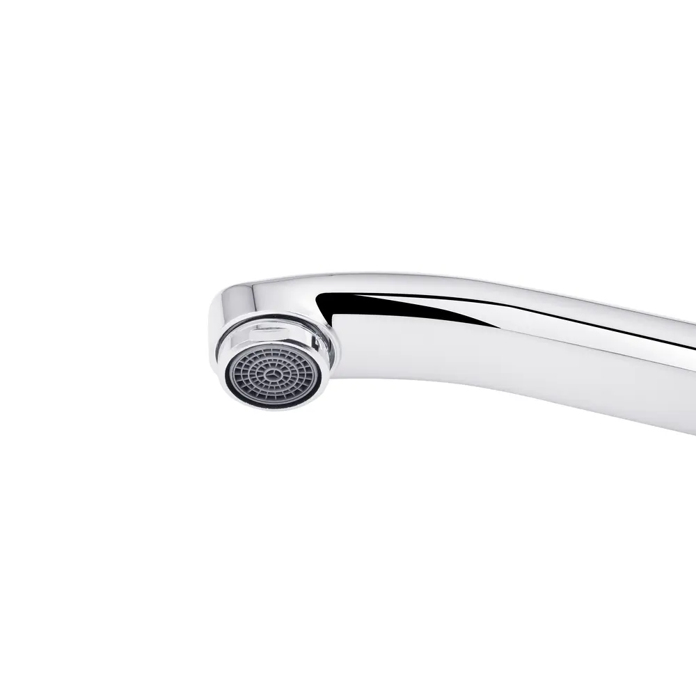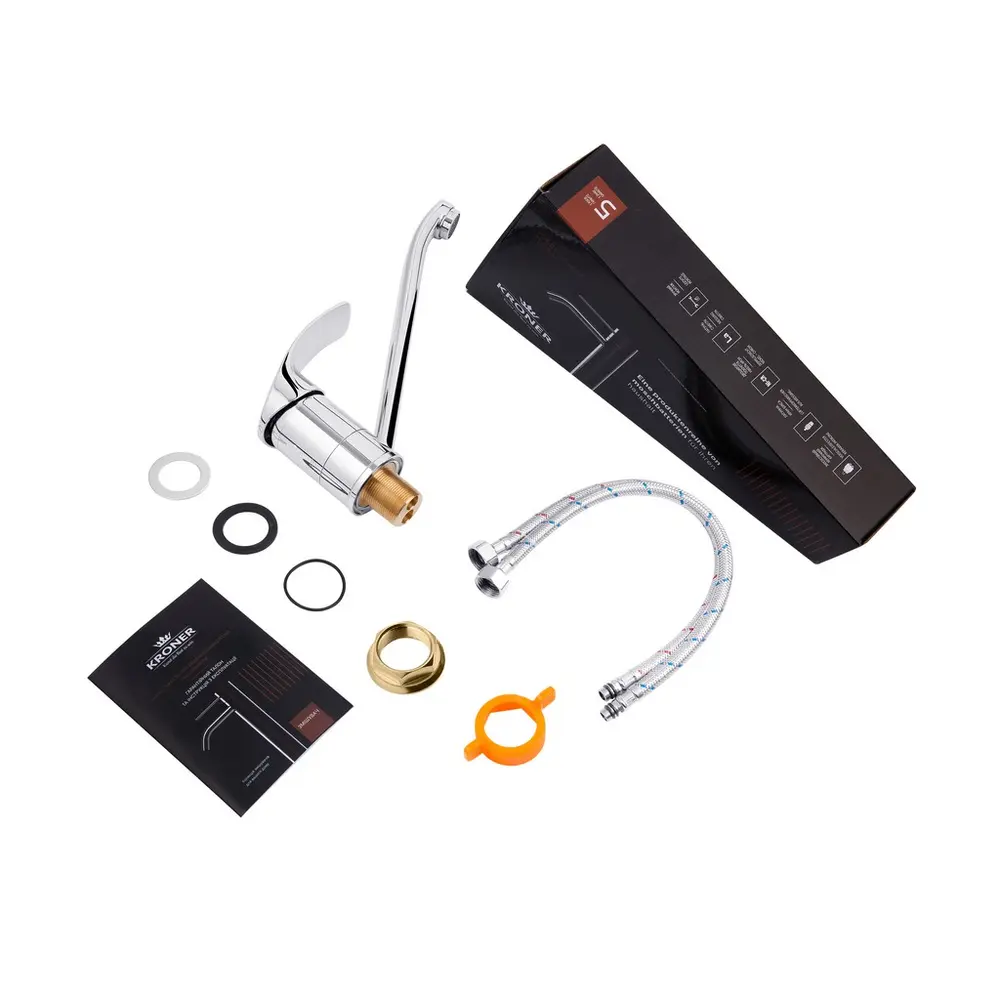 Кухонні змішувачі від KRONER – це німецька якість, технологія та надійність. Сучасний дизайн стане вдалим доповненням інтер’єру кухні. Виготовленні з якісних матеріалів, що не піддаються корозії, легкість у збірці не завдасть клопоту при монтажу та використанні. Мають поворотний вилив і встановлюється на один отвір із підведенням води за допомогою гнучких шлангів М10х1/2". Шланги для підключення входять у комплект. Данна модель виготовлена з латуні.