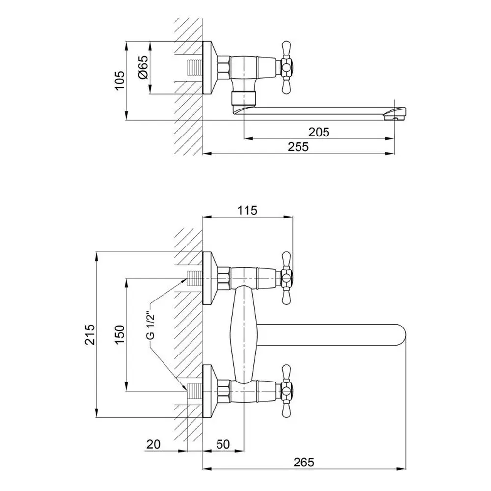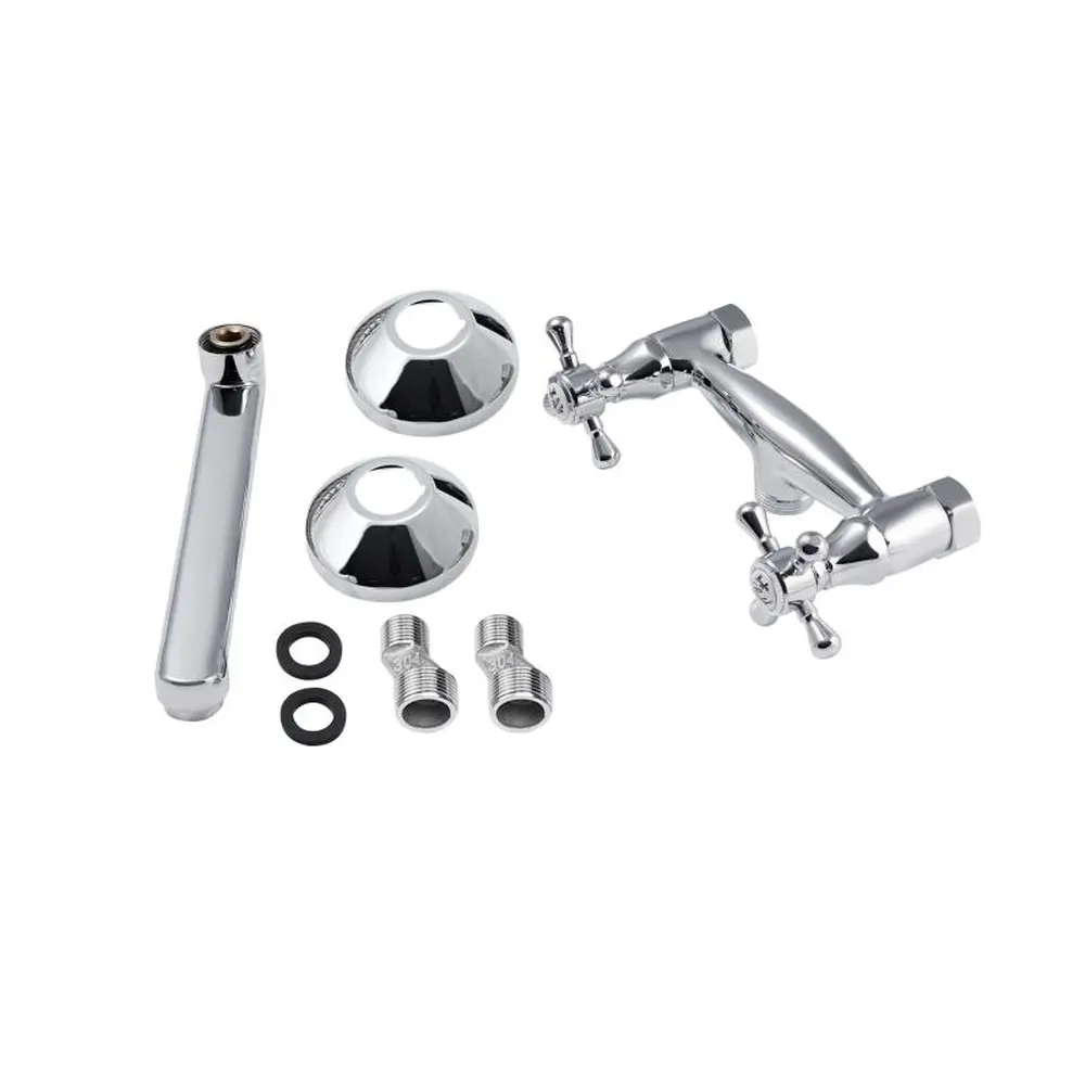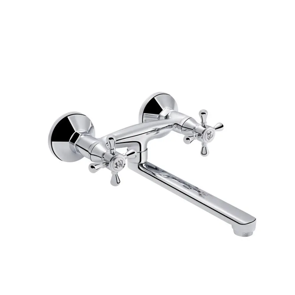 Змішувач для кухні Lidz (CRM) Mayfair 16361 виготовлений з високоякісної міцної латуні. Завдяки глянцевому хромованому покриттю має оригінальний зовнішній вигляд. Виконаний у класичному стилі, з вентильними ручками для перемикання потоку холодної та гарячої води. Завдяки настінному монтажу змішувач не займатиме зайвого місця на стільниці.