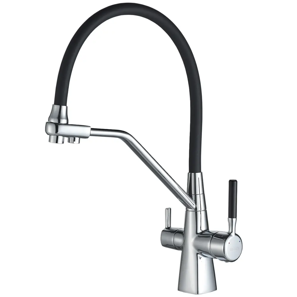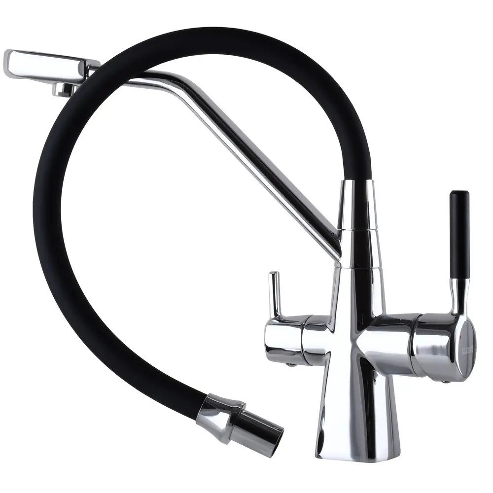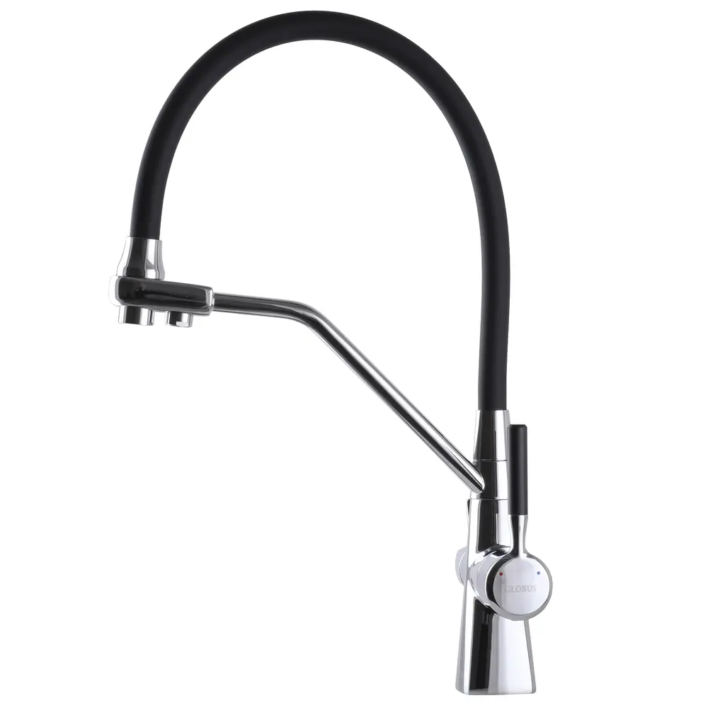 Кухонний змішувач Globus Lux LAZER GLLR-0700-L-00-01, комбінований під ОСМОС, чорний гофрогусак, колір корпусу- хром.