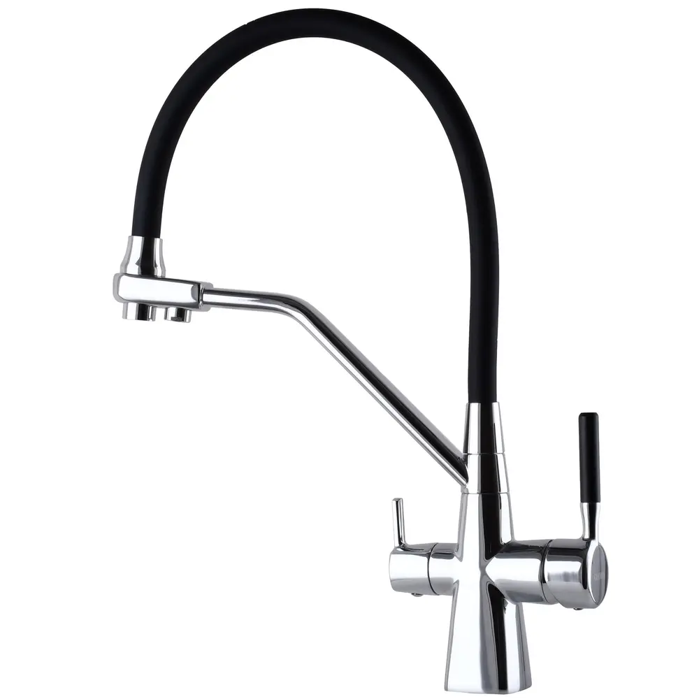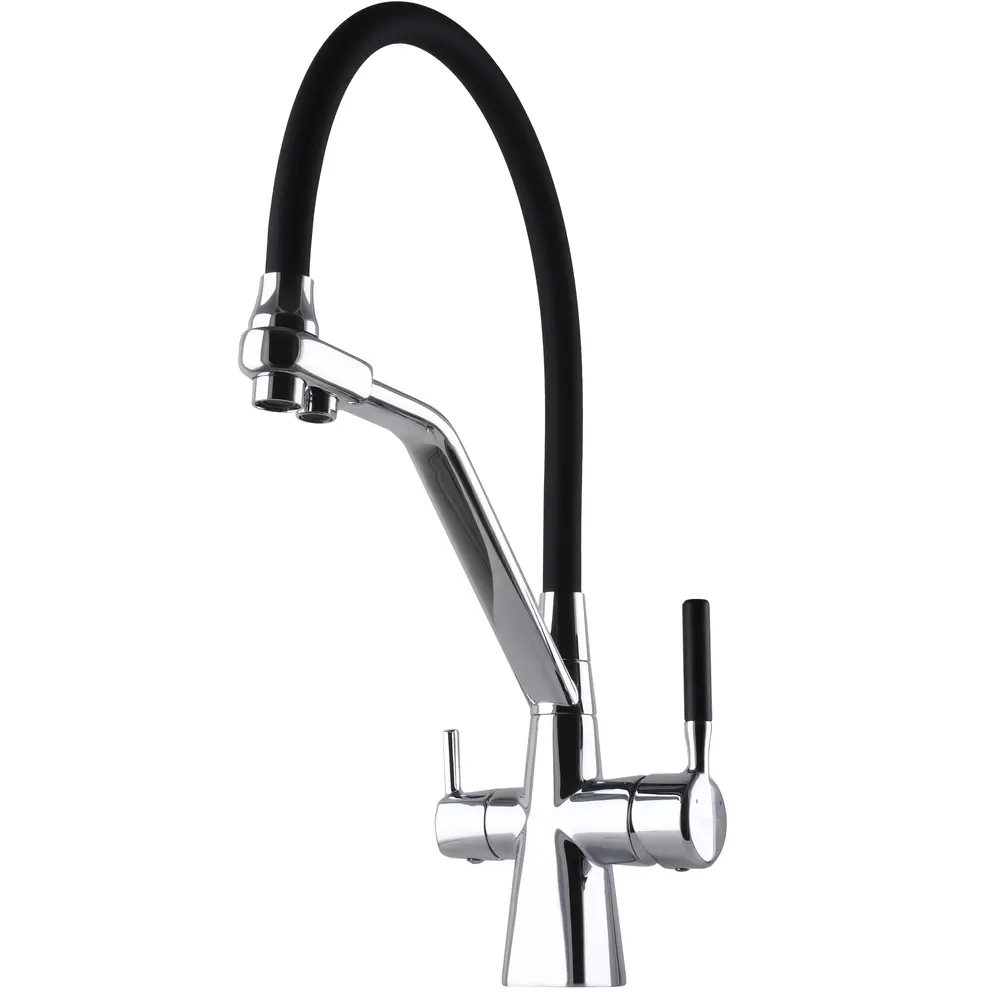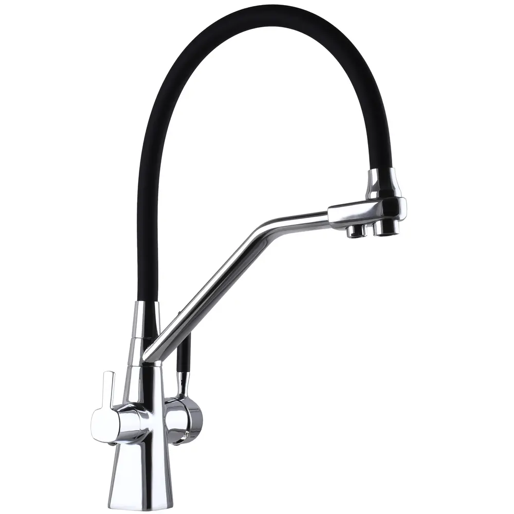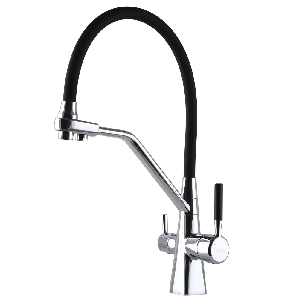 Кухонний змішувач Globus Lux LAZER GLLR-0700-L-00-01, комбінований під ОСМОС, чорний гофрогусак, колір корпусу- хром.