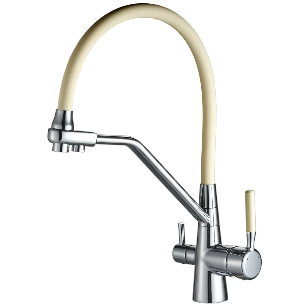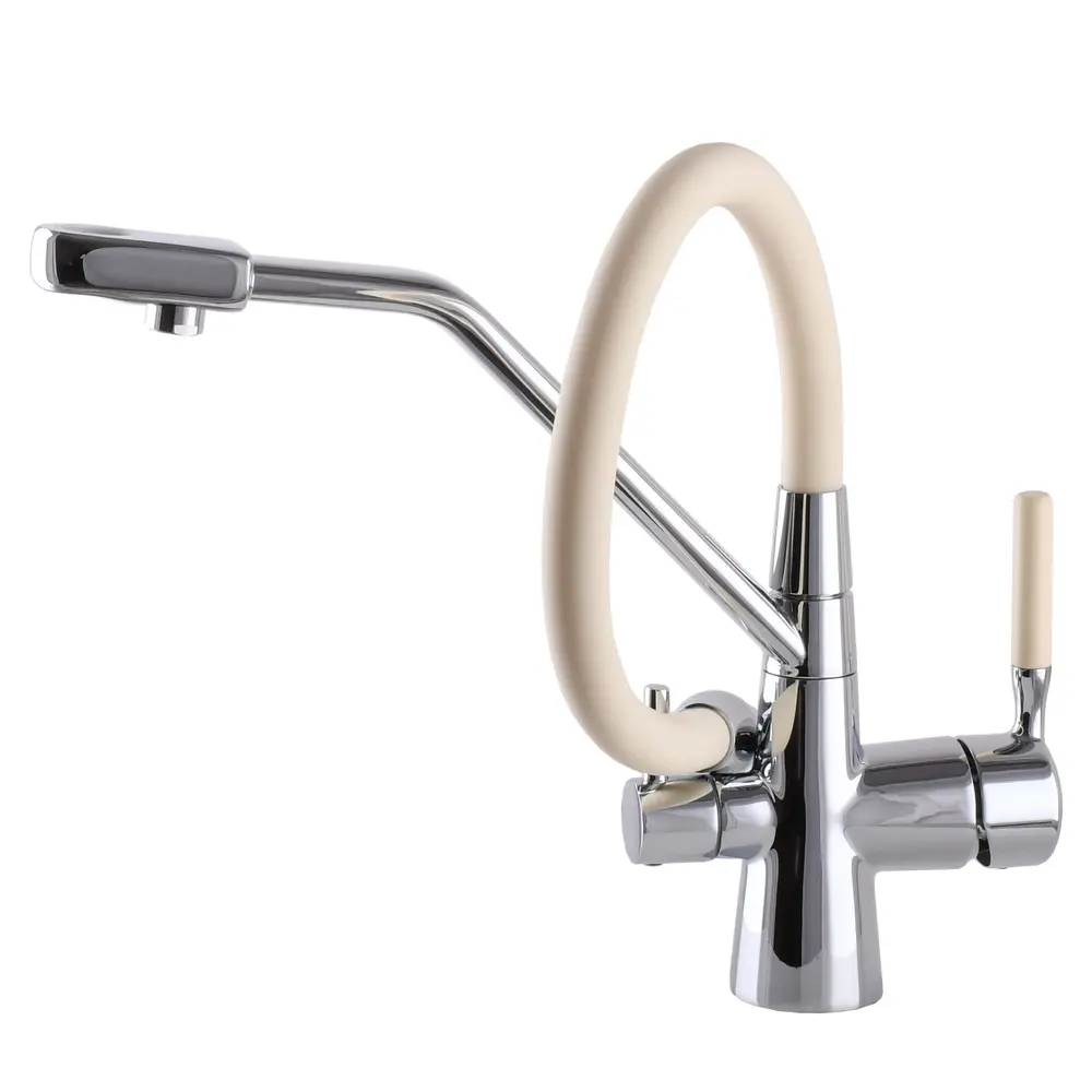Кухонний змішувач Globus Lux LAZER GLLR-0800-00-06, комбінований під ОСМОС, гофрогусак кольору слонова кістка, колір корпусу- хром