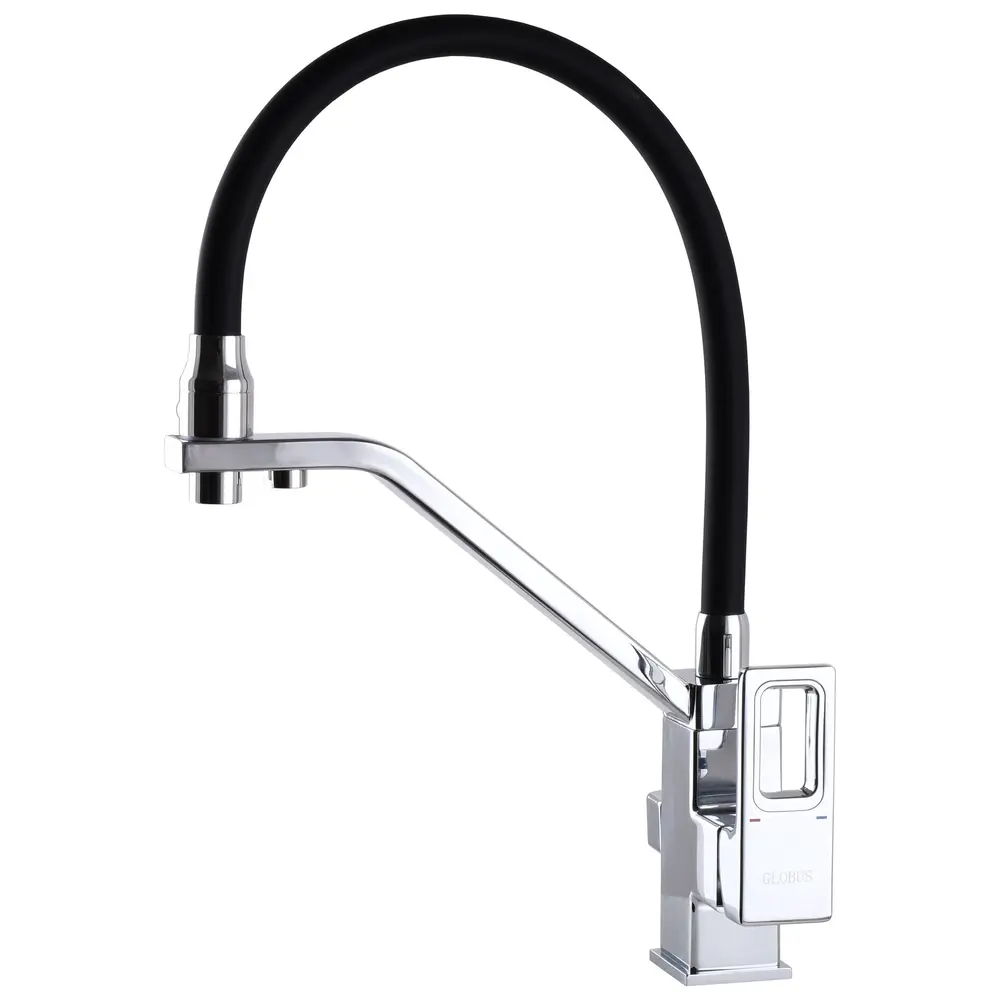 Кухонний змішувач Globus Lux LAZER GLLR-0900-00-01, комбінований під ОСМОС, чорний гофрогусак, колір корпусу- хром