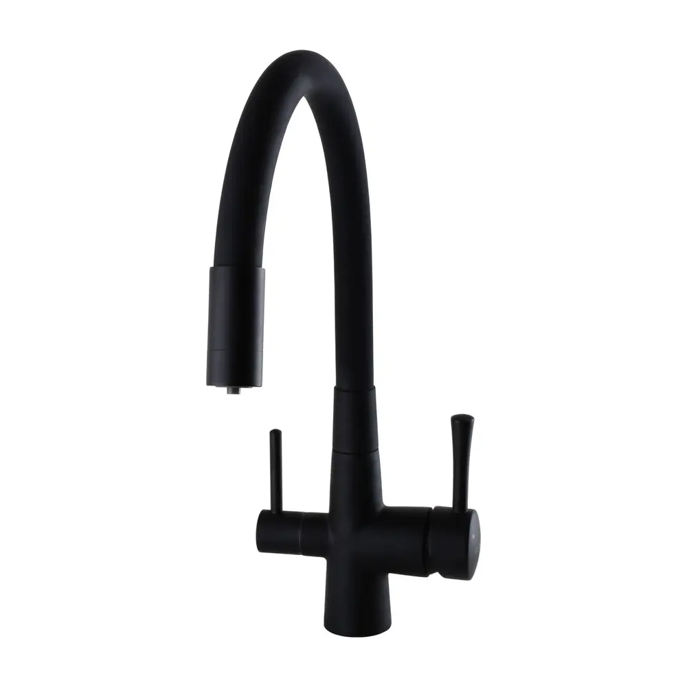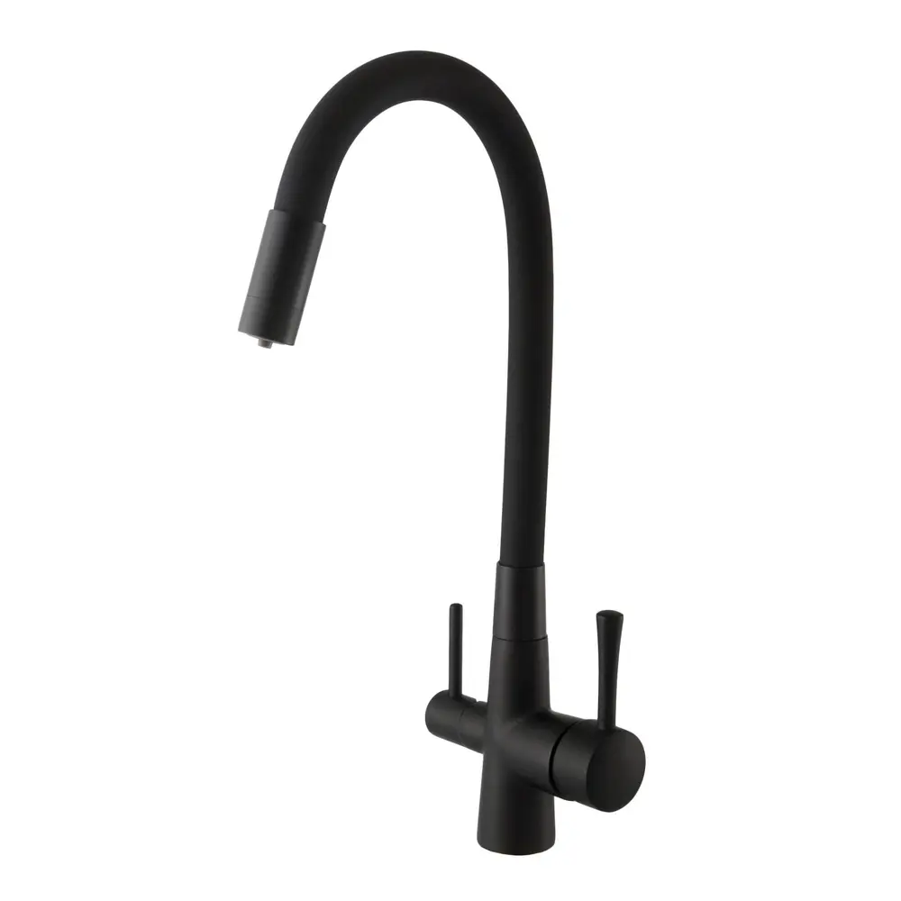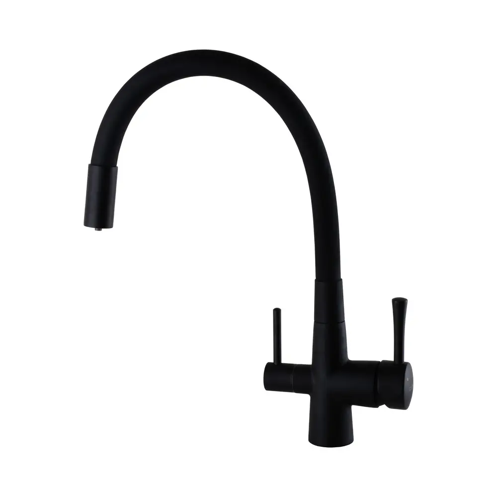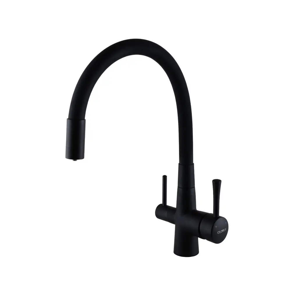 Кухонний змішувач Globus Lux GLLR-0903-10-BB шланг гофра , Чорний матовий комбінований під ОСМОС на гайці