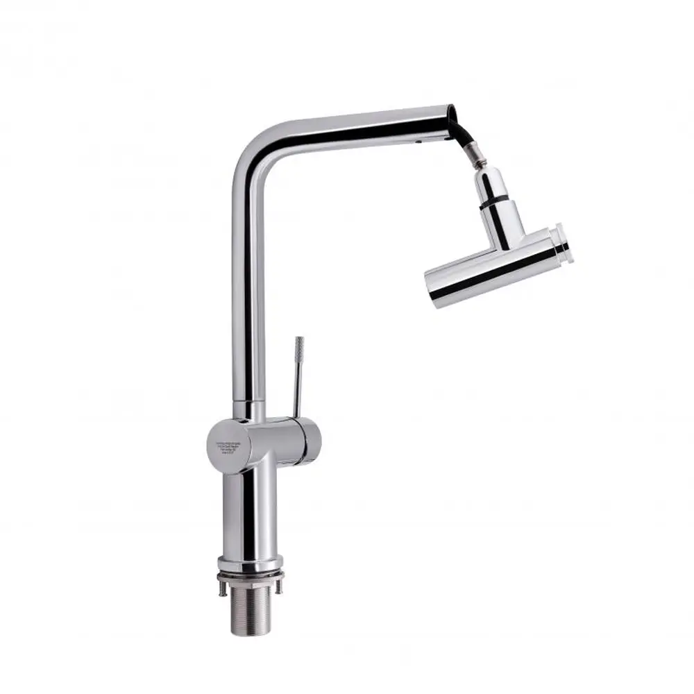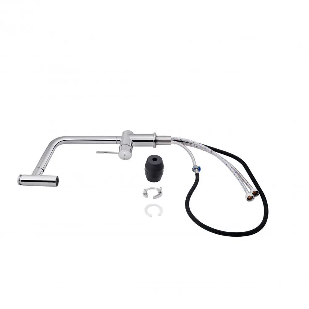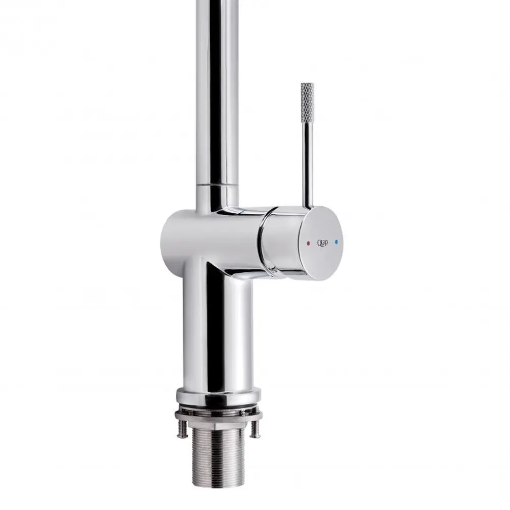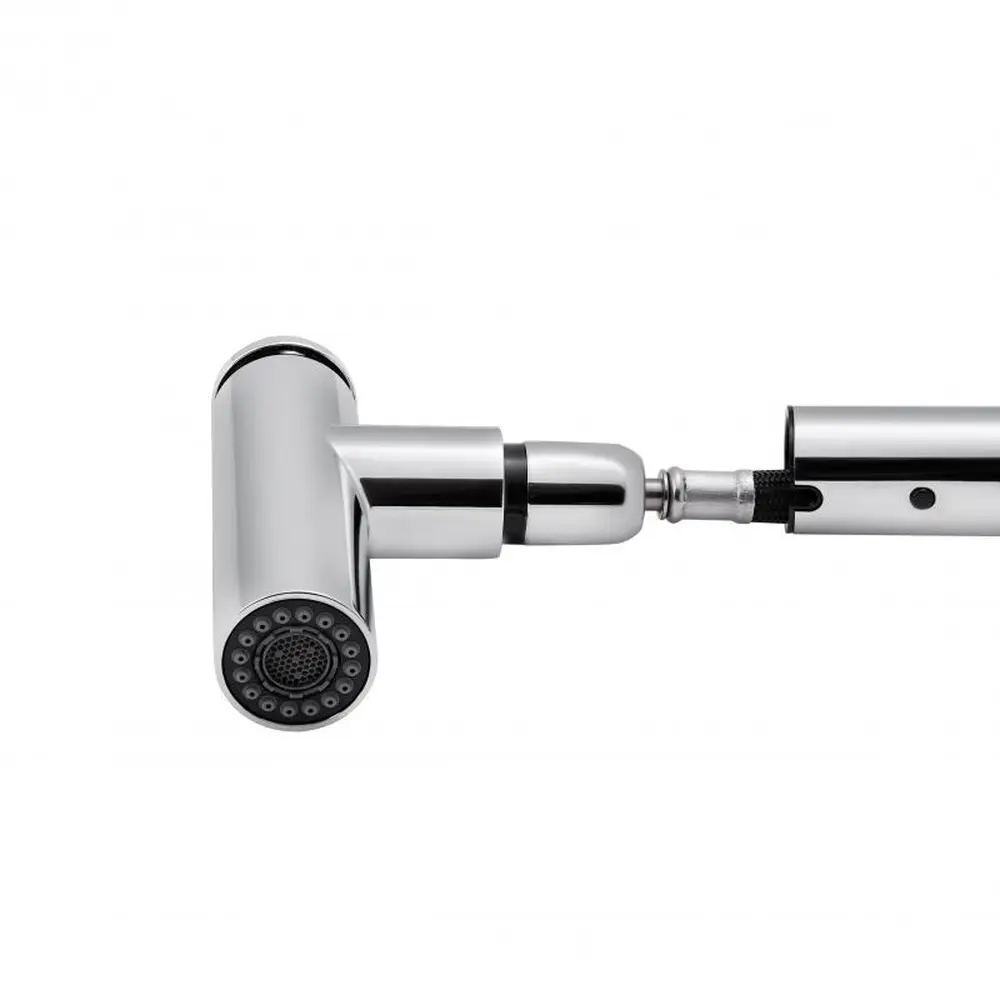 Змішувач для кухні з висувним виливом Qtap Scorpio 9050105FC виготовлено з високоякісної латуні з глянцевим хромованим покриттям, що забезпечує довговічну безперебійну роботу виробу. Завдяки висувній формі виливу і двом режимам подачі струменя, які перемикаються кнопкою на виливі, можна з легкістю очистити важкодоступні місця на посуді. Довжина висувного шланга - 1470 мм. Управління температурою і напором води здійснюється за допомогою зручного важеля.