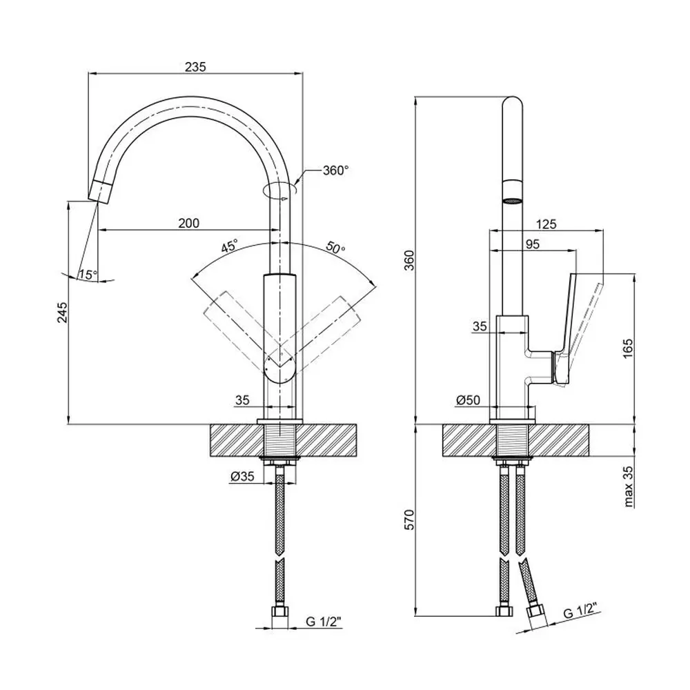 Змішувач, гнучкий підвід, кріпильні деталі.