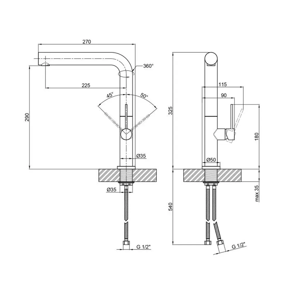 Змішувач, гнучкий підвід, кріпильні деталі.