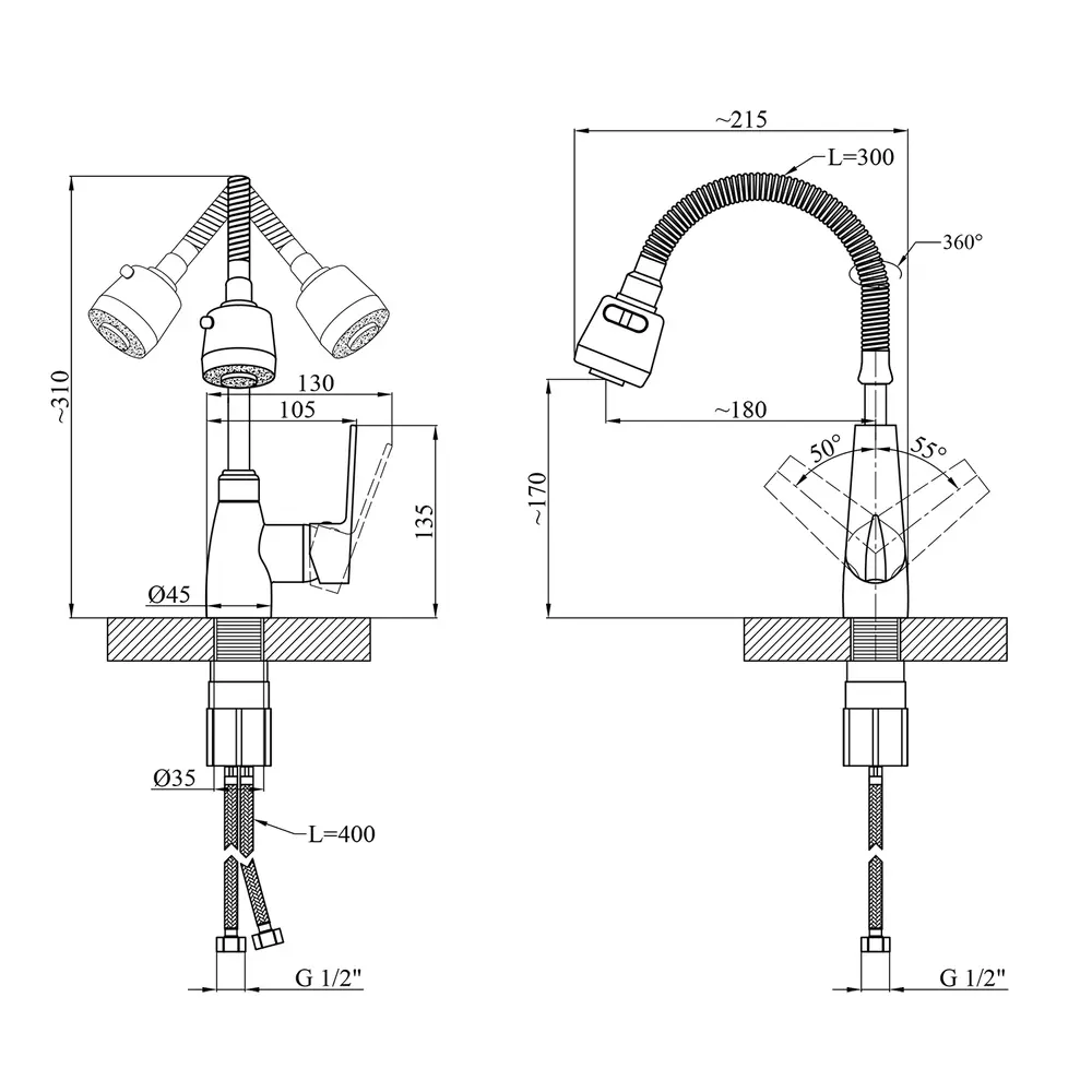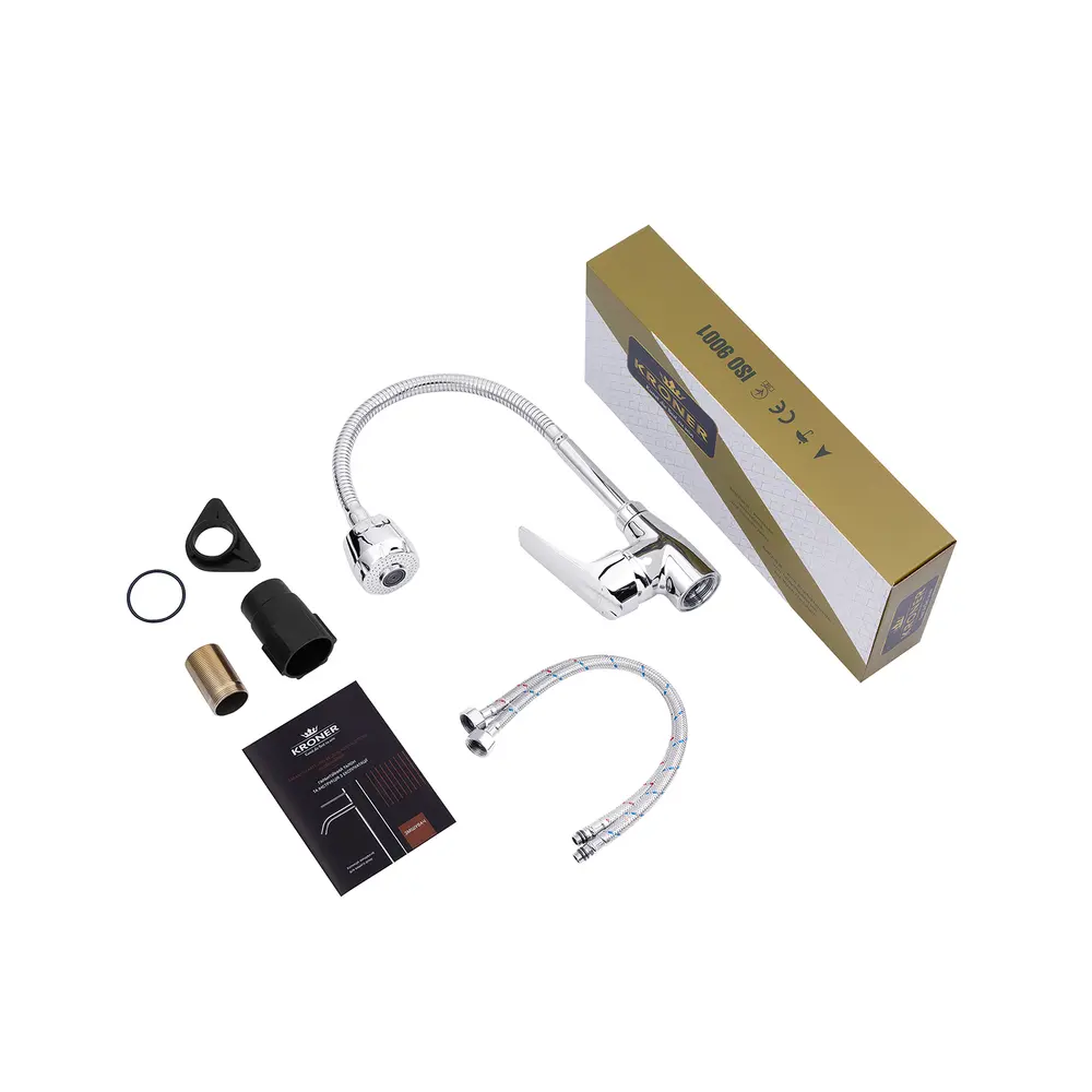 Кухонні змішувачі від KRONER – це німецька якість, технологія та надійність. Сучасний дизайн стане вдалим доповненням інтер’єру кухні. Виготовленні з якісних матеріалів, що не піддаються корозії, легкість у збірці не завдасть клопоту при монтажу та використанні. Мають поворотний вилив і встановлюється на один отвір із підведенням води за допомогою гнучких шлангів М10х1/2". Шланги для підключення входять у комплект. Данна модель виготовлена з силуміну.