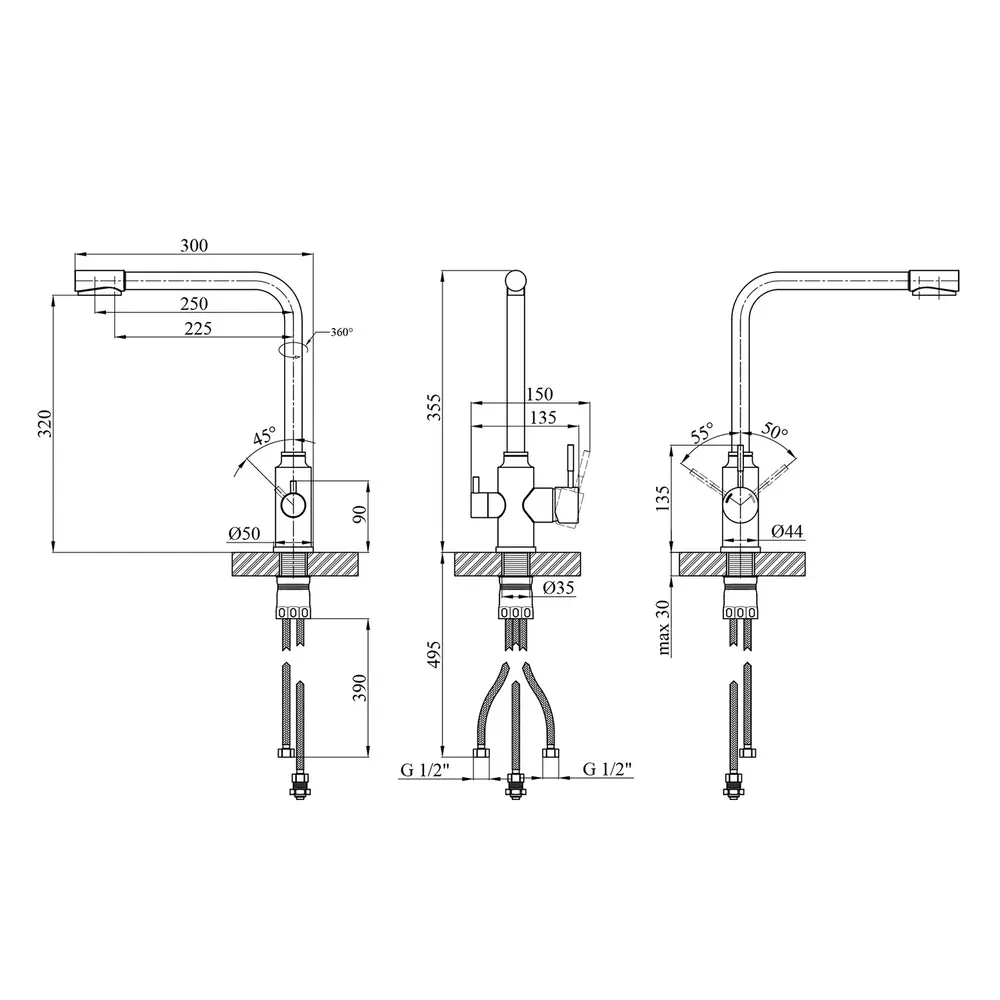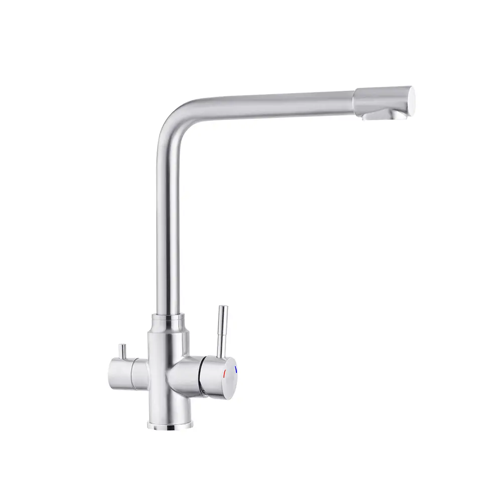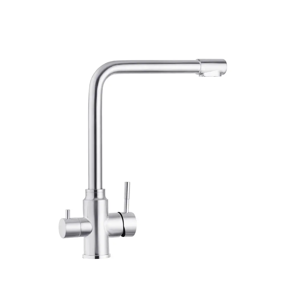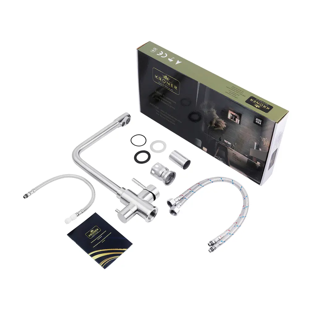 Кухонні змішувачі від KRONER – це німецька якість, технологія та надійність. Сучасний дизайн стане вдалим доповненням інтер’єру кухні. Виготовленні з якісних матеріалів, що не піддаються корозії, легкість у збірці не завдасть клопоту при монтажу та використанні. Мають поворотний вилив і встановлюється на один отвір із підведенням води за допомогою гнучких шлангів М10х1/2". Шланги для підключення входять у комплект. Данна модель виготовлена з нержавіючої сталі AISI 304.
