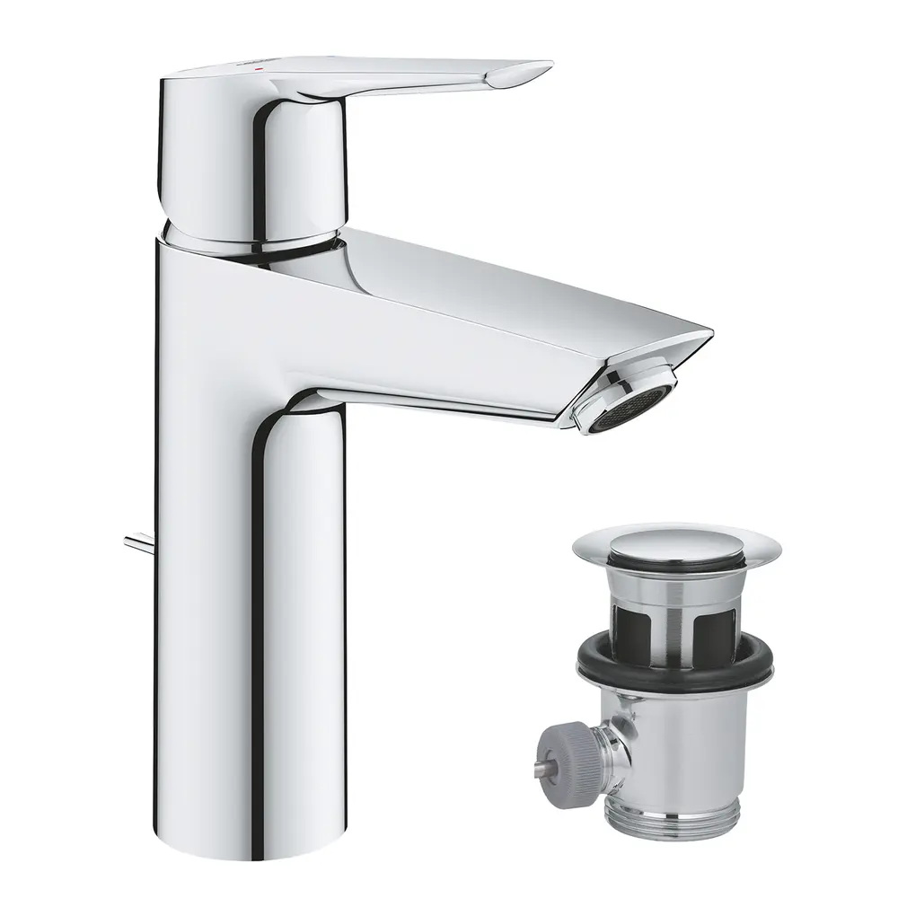 Смеситель для раковины Grohe QuickFix Start M-Size 23455002 выполнен из высококачественной латуни, устойчивой к воздействию коррозии, ударов и трещин. Монтируется врезным способом. Благодаря хромированному покрытию имеет оригинальный внешний вид. Напор воды и ее температура регулируются поворотом рычага в нужное положение. В комплект входит штоковой донный клапан 1 1/4".