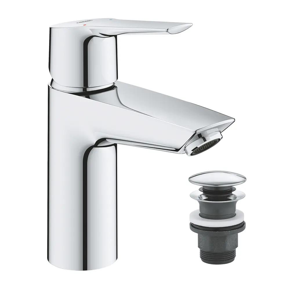 Змішувач для раковини Grohe QuickFix Start S-Size 23550002 виконаний із високоякісної латуні, що стійка до впливу корозії, ударів і тріщин. Монтується врізним способом. Завдяки хромованому покриттю має оригінальний зовнішний вигляд. Напір води і її температура регулюються поворотом важеля в необхідне положення. До комплекту входить донний клапан 1 1/4".