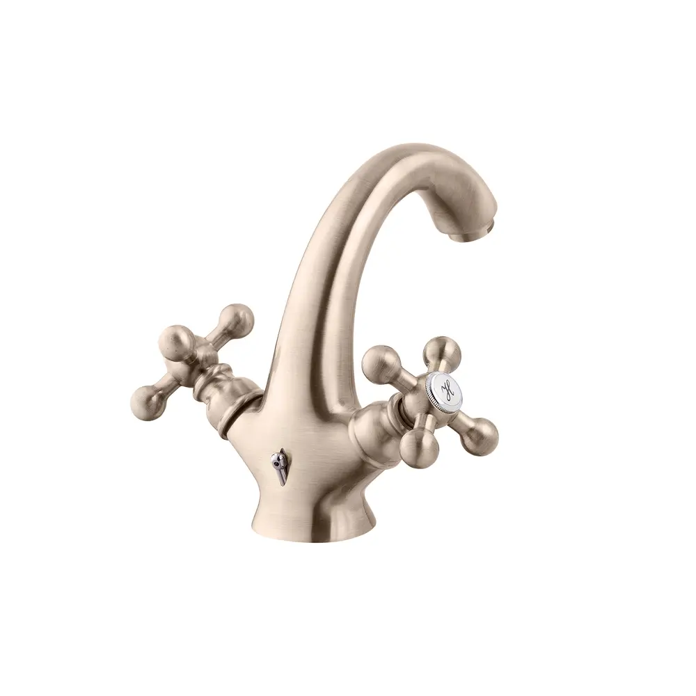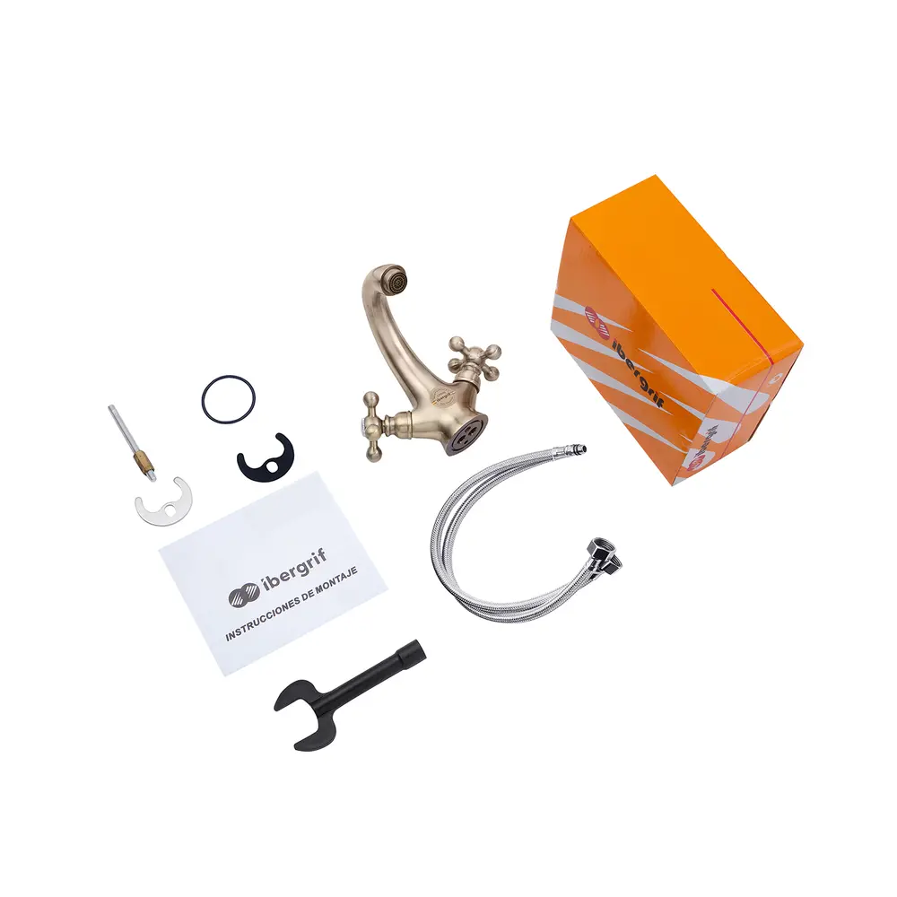 Змішувач для раковини Ibergrif Lucca M11052C виконаний у ретро-стилі, ідеально доповнить стиль класичної або сучасної ванної кімнати. Литий латунний корпус з бронзовим зносостійким покриттям не схильний до корозії та механічних пошкоджень, не тьмяніє в процесі щоденної експлуатації. Керамічний кран-букс, керований двома вентилями, забезпечує водою необхідної температури з потрібним напором. обладненний аератором, який створює ідеальний потік води та скорочує її споживання. Просте підключення змішувача до системи водопостачання здійснюється за допомогою гнучкого підведення 40 см із підключенням 1/2".