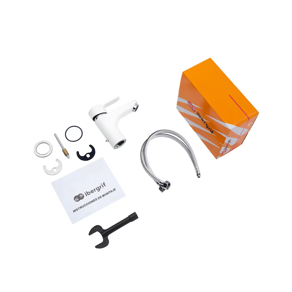 Змішувач для раковини Ibergrif Square M11022W органічно впишеться в інтер'єр сучасної ванної кімнати та забезпечить комфорт водних процедур. Литий латунний корпус з білим зносостійким покриттям не схильний до корозії та механічних пошкоджень, не тьмяніє в процесі щоденної експлуатації. Зручний важіль рухається м'яко та плавно, забезпечуючи точне регулювання водного потоку. обладненний аератором, який створює ідеальний потік води та скорочує її споживання. Просте підключення змішувача до системи водопостачання здійснюється за допомогою гнучкого підведення 40 см із підключенням 1/2".
