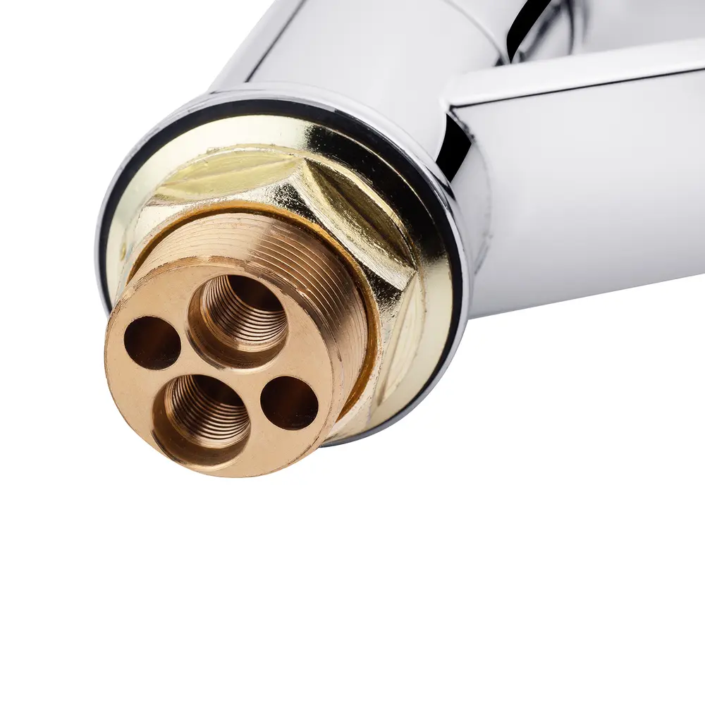 Kroner - це німецька якість, технологія та надійність. Сучасні моделі змішувачів для ванної кімнати та кухні - це найкращий дизайн, сучасні німецькі технології та надійні перевірені матеріали, які гарантують аристократичну якість Kroner. Спеціалісти Kroner використовують найкращі технології лиття, гальванізації, шліфування, покриття та збірки змішувачів, перетворюючи наші вироби на витвір мистецтва, що задовольнить найвибагливішого покупця. Відчувайте щодня справжнє задоволення, керуючи водою, разом з Kroner.