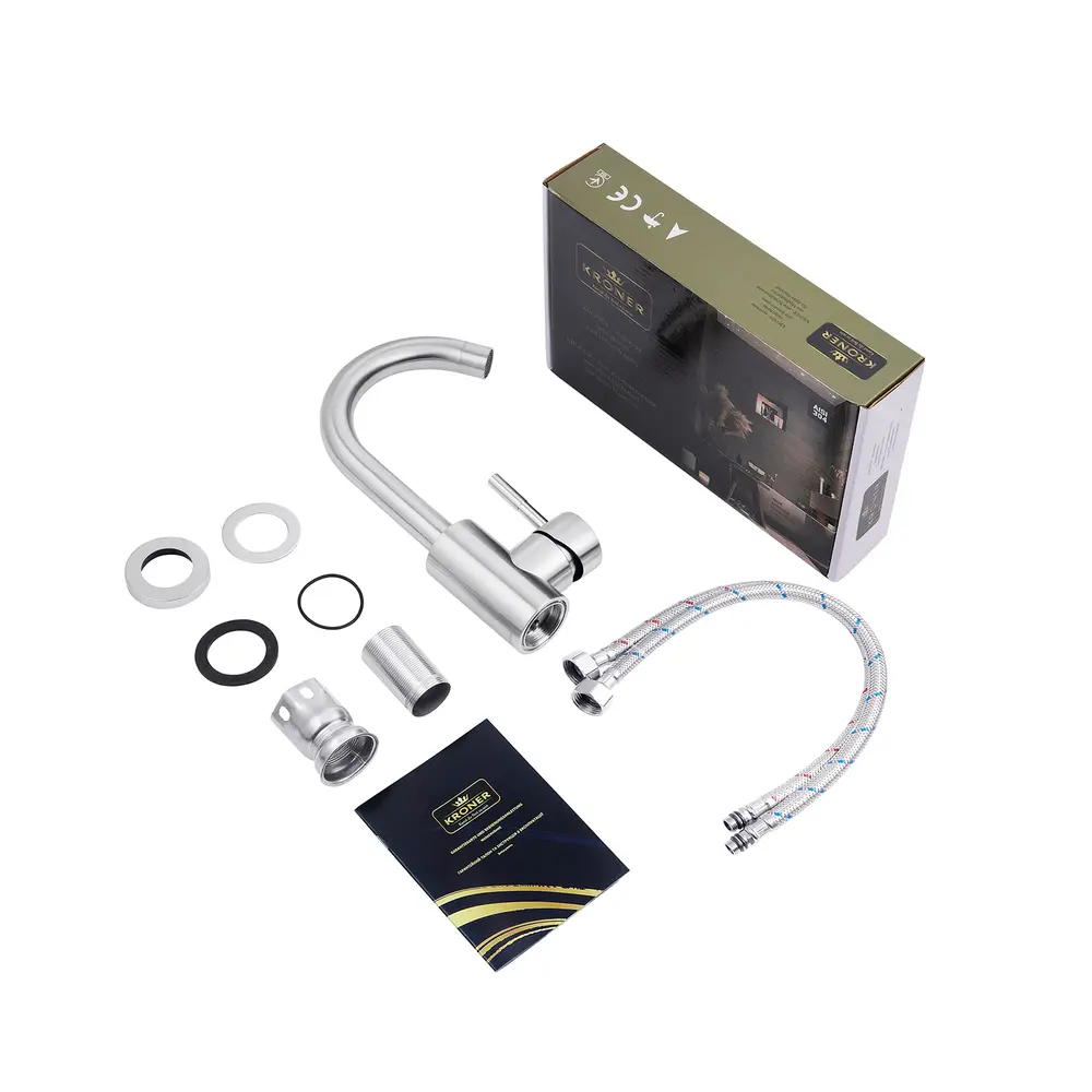 Kroner - це німецька якість, технологія та надійність. Сучасні моделі змішувачів для ванної кімнати та кухні - це найкращий дизайн, сучасні німецькі технології та надійні перевірені матеріали, які гарантують аристократичну якість Kroner. Спеціалісти Kroner використовують найкращі технології лиття, гальванізації, шліфування, покриття та збірки змішувачів, перетворюючи наші вироби на витвір мистецтва, що задовольнить найвибагливішого покупця. Відчувайте щодня справжнє задоволення, керуючи водою, разом з Kroner.