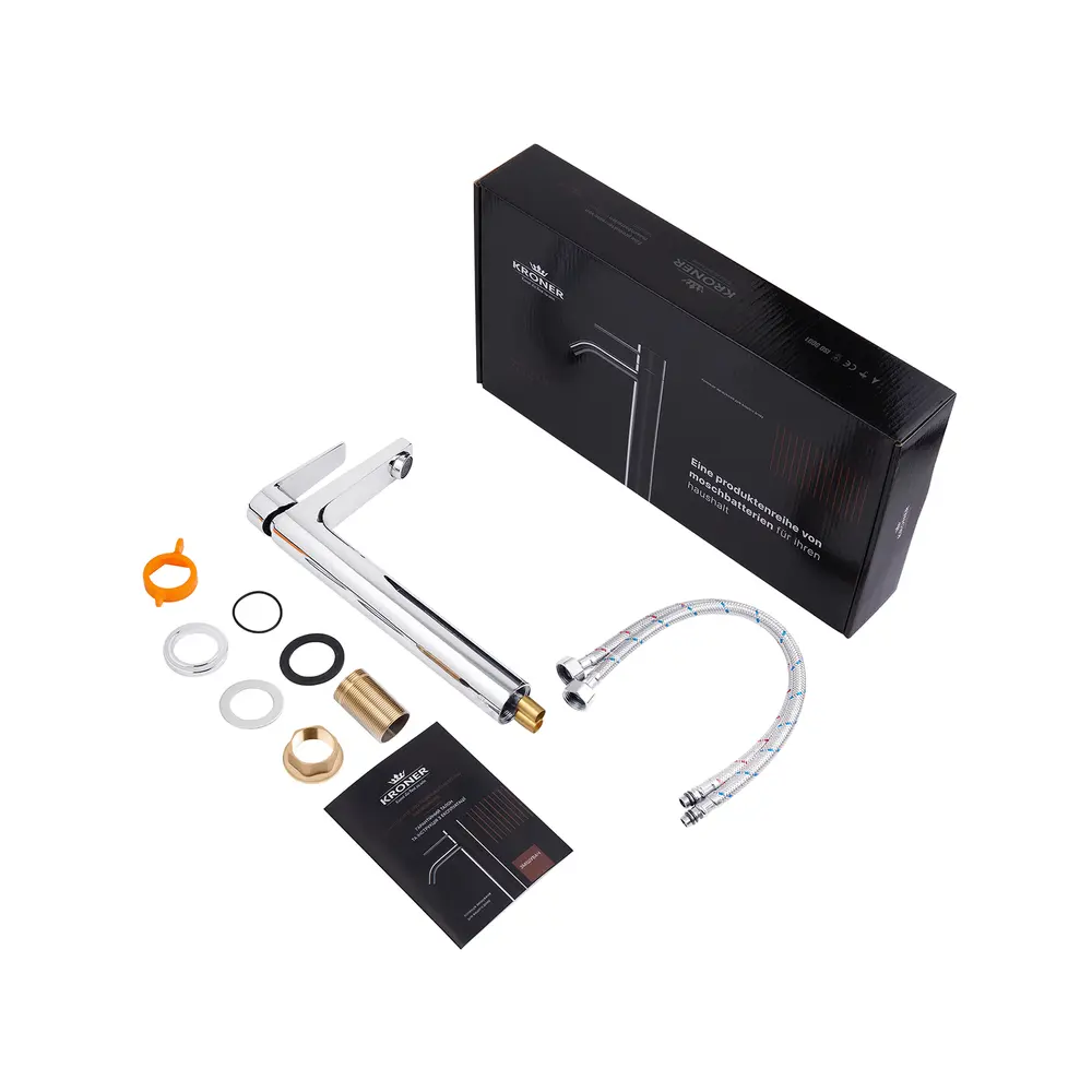 Kroner - це німецька якість, технологія та надійність. Сучасні моделі змішувачів для ванної кімнати та кухні - це найкращий дизайн, сучасні німецькі технології та надійні перевірені матеріали, які гарантують аристократичну якість Kroner. Спеціалісти Kroner використовують найкращі технології лиття, гальванізації, шліфування, покриття та збірки змішувачів, перетворюючи наші вироби на витвір мистецтва, що задовольнить найвибагливішого покупця. Відчувайте щодня справжнє задоволення, керуючи водою, разом з Kroner.