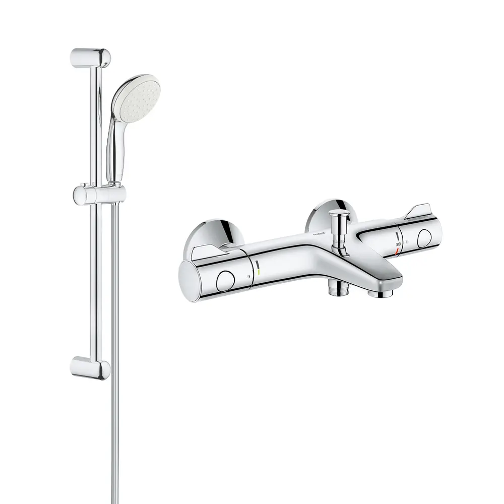 Смеситель для ванной Grohe Grohtherm 800 34567000 с душевым гарнитуром 27853001 (34567001) представляет собой инновационное решение, обеспечивающее комфорт и безопасность при принятии душа или ванны.