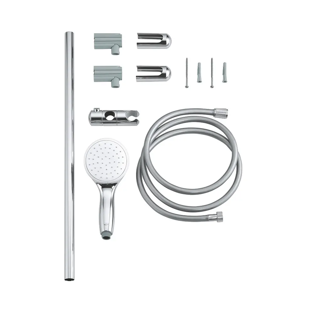 Душевый гарнитур включает в себя ручной душ, душевую штангу длиной 600 мм и душевой шланг Relexaflex длиной 1750 мм.