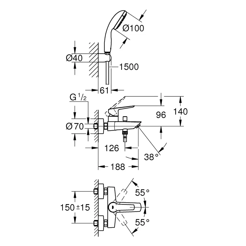 Смеситель для ванной Grohe QuickFix Start 23413002 выполнен из высококачественной латуни с хромированной глянцевой поверхностью. Монтируется настенным способом. Благодаря декоративным розеткам, можно скрыть все погрешности установки. Напор воды и ее температура регулируются поворотом рычага в нужное положение. Переключение ванна/душ производится с помощью дивертора. Душевый гарнитур входит в комплект.
