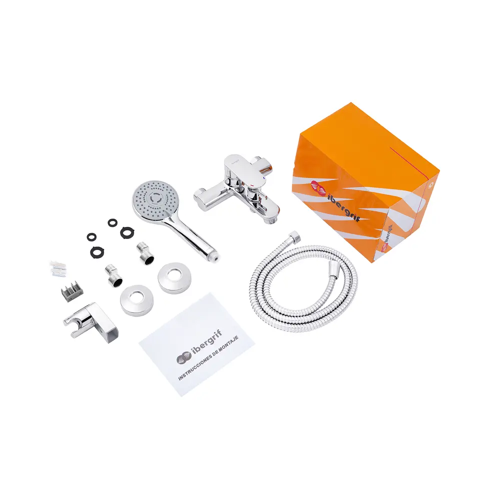 Змішувач, лійка для ручного душу, душовий шланг, кронштейн для ручного душу, кріплення, інструкція.