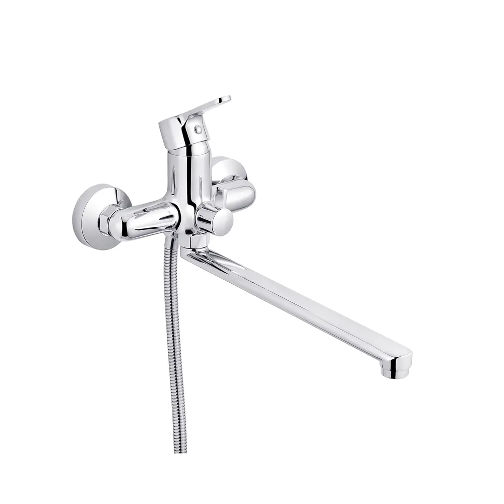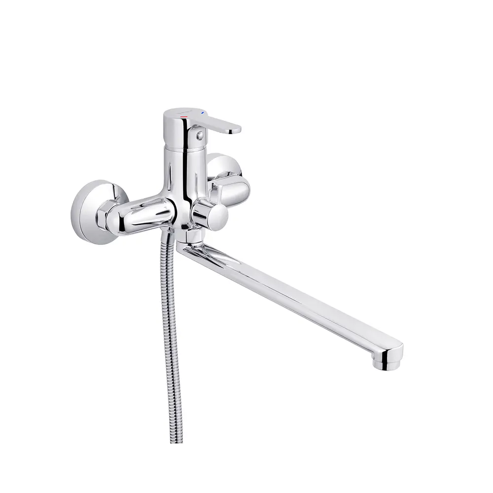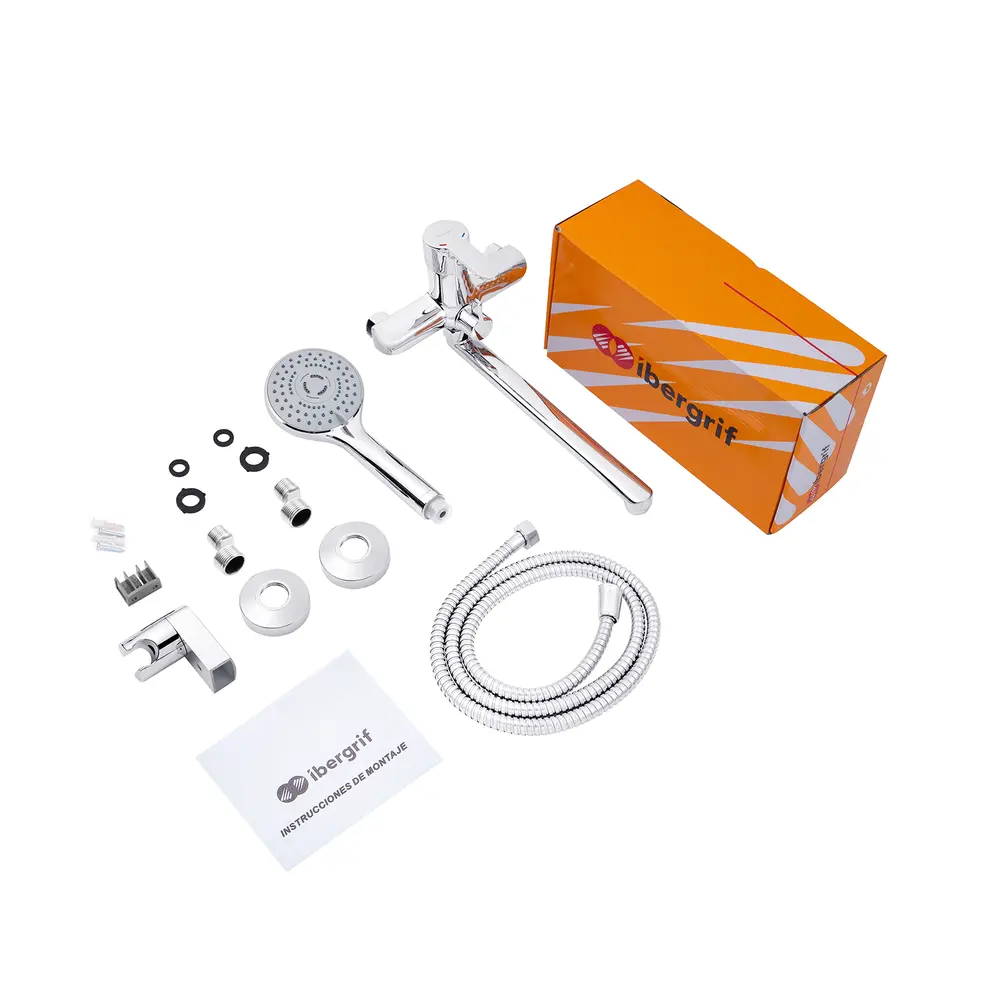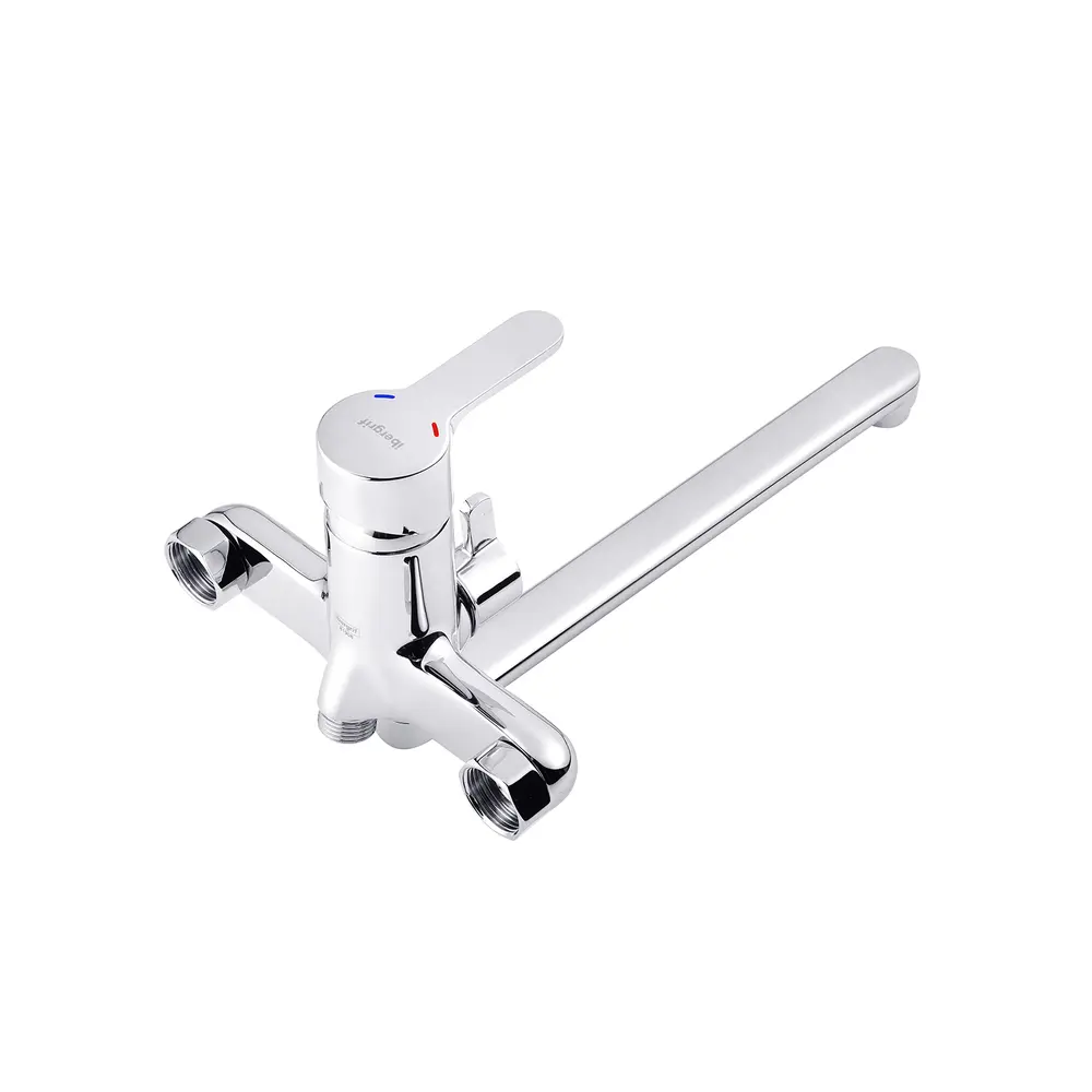 Змішувач для ванни Ibergrif Square M13122 гармонійно виглядає у будь-якій ванній кімнаті, оформленій у сучасному стилі. Модель виготовлена з латуні з хромовим покриттям, яке надійно захищає від корозії та подряпин. Керамічний картридж діаметром 35 мм безшумно змішує холодну та гарячу воду. Регулювання температури та напору здійснюється за допомогою важеля з індикацією. Вилив обладненний аератором, який скорочує витрату води за рахунок її насичення повітрям. Має вбудований дивертор для перемикання потоку води з душу на вилив. Поворотний вилив забезпечує комфорт при прийомі водних процедур. Змішувач комплектується однорежимною ручною лійкою з гнучким шлангом та тримачем для лійки.