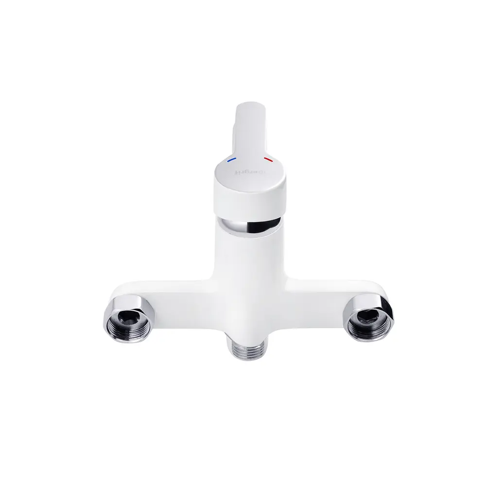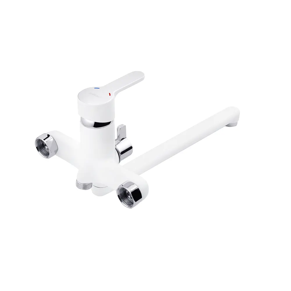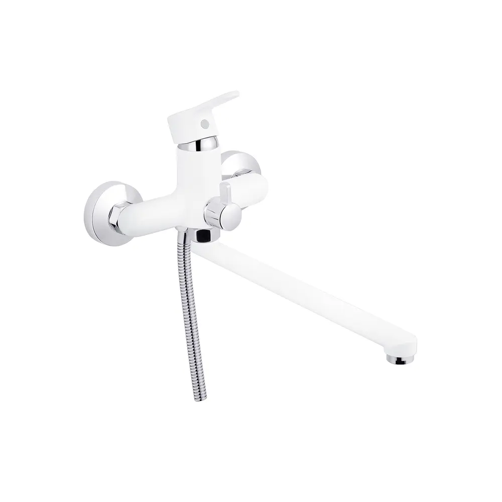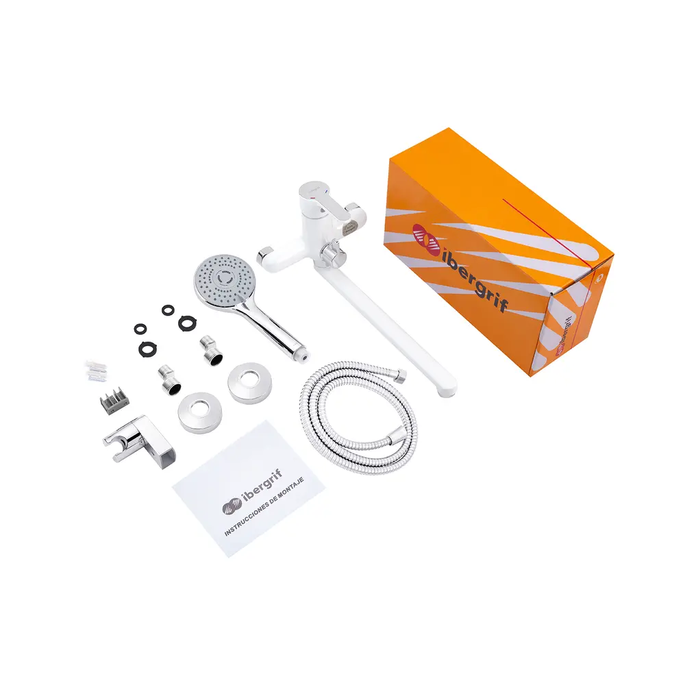 Змішувач для ванни Ibergrif Square M13122W гармонійно виглядає у будь-якій ванній кімнаті, оформленій у сучасному стилі. Модель виготовлена з латуні з білим покриттям, яке надійно захищає від корозії та подряпин. Керамічний картридж діаметром 35 мм безшумно змішує холодну та гарячу воду. Регулювання температури та напору здійснюється за допомогою важеля з індикацією. Вилив обладненний аератором, який скорочує витрату води за рахунок її насичення повітрям. Має вбудований дивертор для перемикання потоку води з душу на вилив. Поворотний вилив забезпечує комфорт при прийомі водних процедур. Змішувач комплектується однорежимною ручною лійкою з гнучким шлангом та тримачем для лійки.