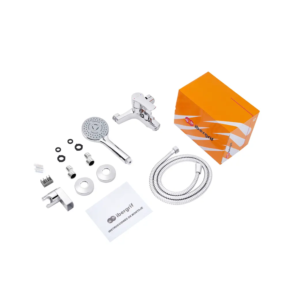 Змішувач, лійка для ручного душу, душовий шланг, кронштейн для ручного душу, кріплення, інструкція.