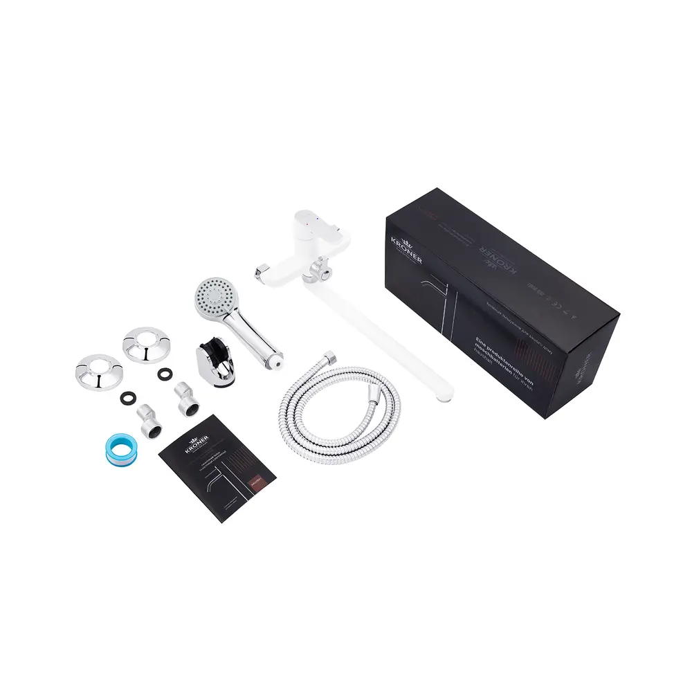 Kroner - це німецька якість, технологія та надійність. Сучасні моделі змішувачів для ванної кімнати та душової кабіни - це найкращий дизайн, сучасні німецькі технології та надійні перевірені матеріали, які гарантують аристократичну якість Kroner. Спеціалісти Kroner використовують найкращі технології лиття, гальванізації, шліфування, покриття та збірки змішувачів, перетворюючи наші вироби на витвір мистецтва, що задовольнить найвибагливішого покупця. Відчувайте щодня справжнє задоволення, керуючи водою, разом з Kroner.