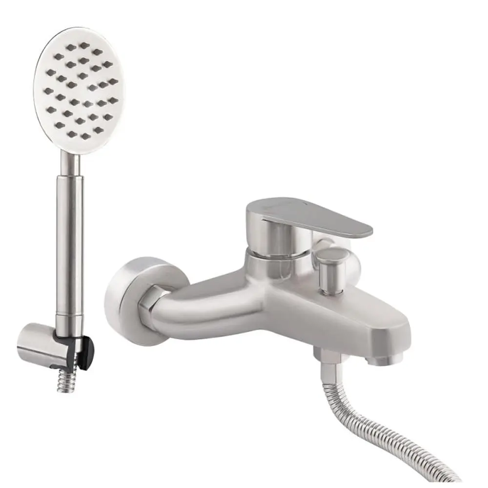 Фіксований змішувач для ванни Imperial 32-006-00 виконаний з нержавіючої сталі, що гарантує тривалий термін експлуатації. Для вмикання подачі води досить підняти важіль і повернути його в необхідний бік. Змішувач монтується на стіну над ванною за допомогою кріпильних елементів, які комплектуються разом зі змішувачем. Круглі розетки приховають похибки установки на обробці. Тримач лійки також кріпиться на стіну. Таким чином, ваші руки будуть вільні під час прийняття душу.