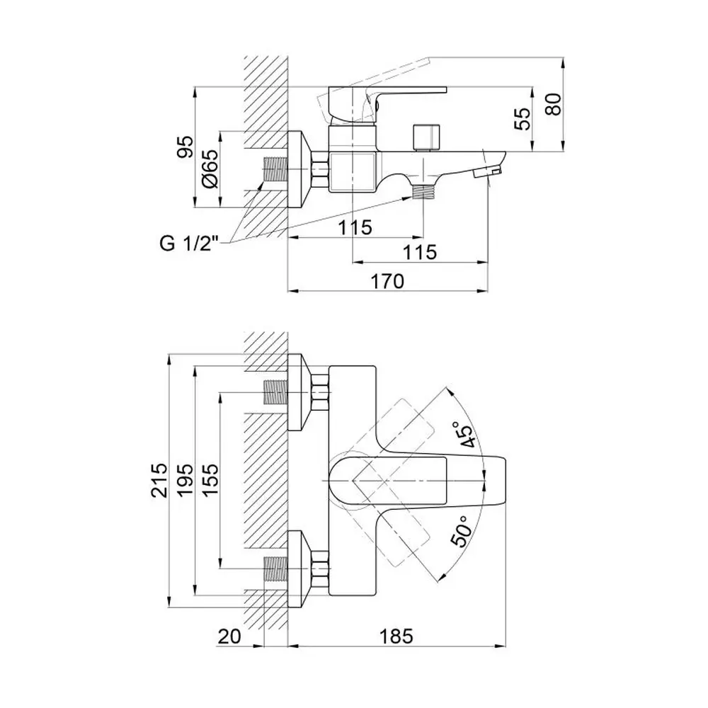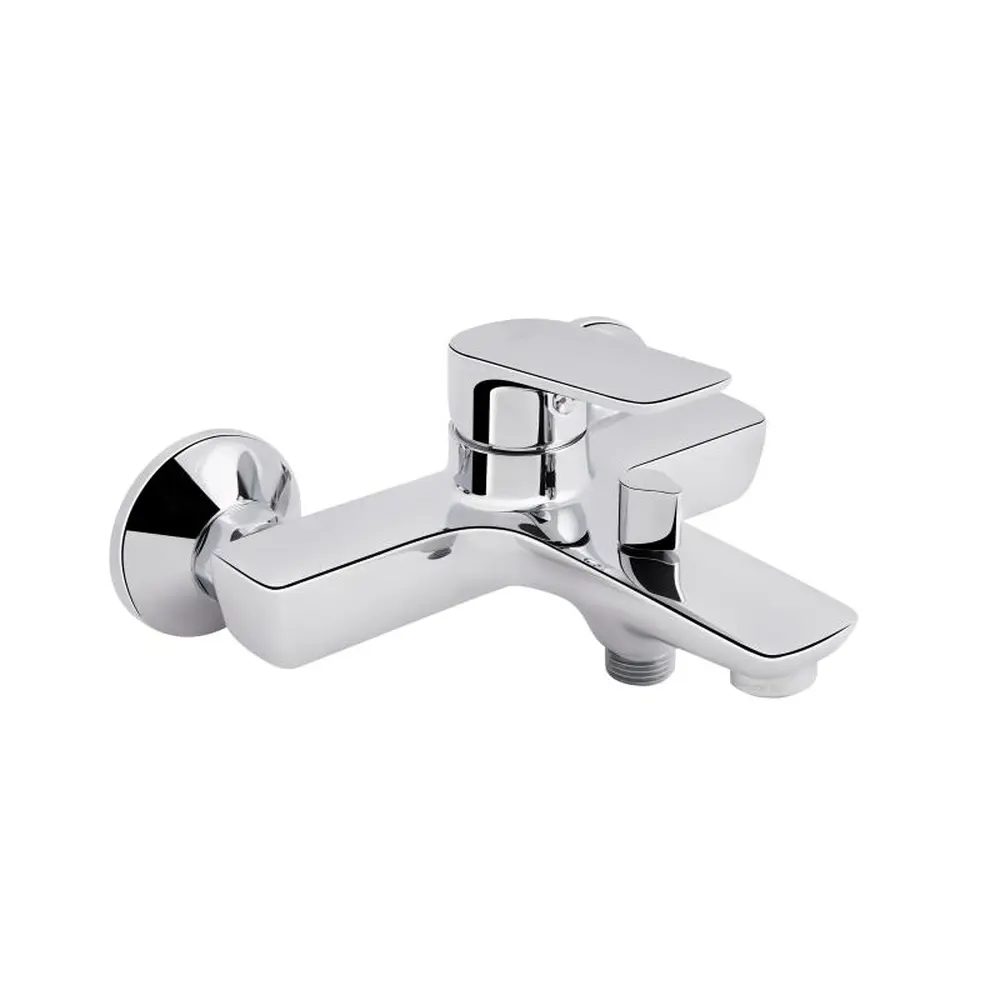 Змішувач для ванни Qtap Leo 3062102GC виготовлений із міцної та зносостійкої латуні з рівномірним хромованим покриттям, завдяки якому виріб має привабливий зовнішній вигляд та більш стійкий до механічних пошкоджень. Подача води регулюється за допомогою зручного важеля, а перемикання у душовий режим - дивертором. Декоративні накладки приховають усі недоліки настінного монтажу.