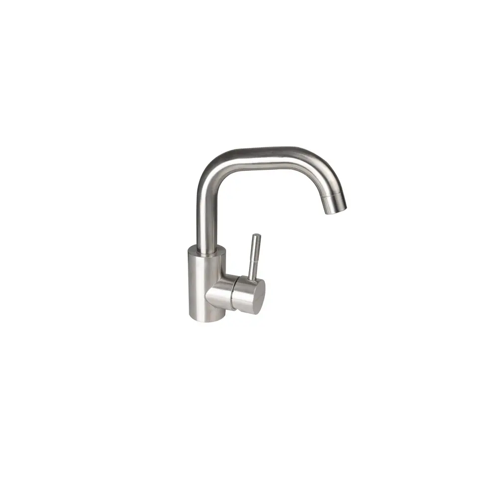 Кухонний змішувач Germece 2055 добре поєднується з круглими формами кухонних мийок. Він має поворотний невисокий вилив, що полегшує миття посуду та мінімізує бризки від води.
