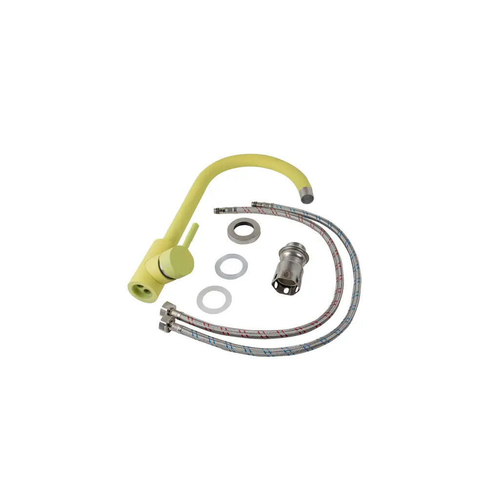 Змішувач для кухні NA3008A виготовляється з нержавіючої сталі, що забезпечує надійність та привабливий зовнішній вигляд. Ви можете замовити змішувач у кольорі, що ідеально поєднується з кольором мийки зі штучного каменю.