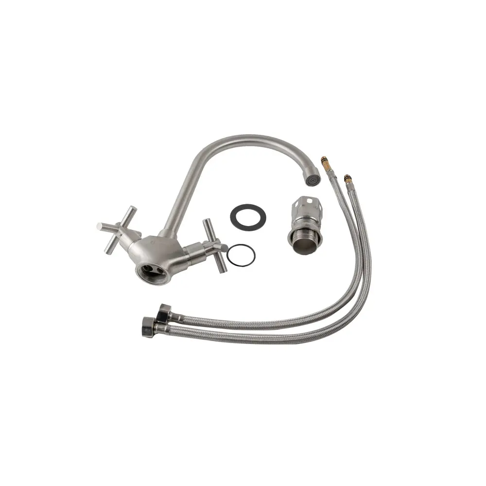 Кухонний двовентильний змішувач Platinum 48 REY добре поєднується з сучасними дизайнами кухонних мийок. Він має поворотний вилив, що полегшує миття посуду та наповнення високого посуду, миття овочів і рук.