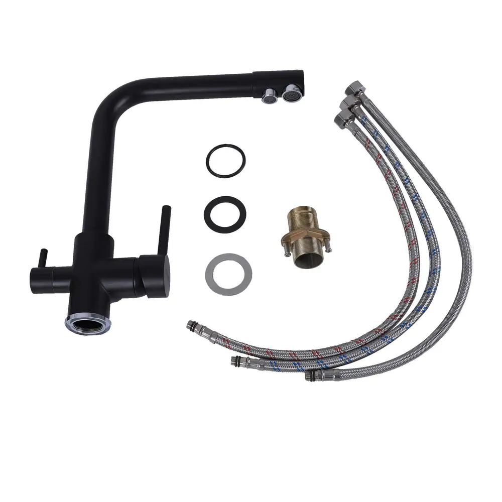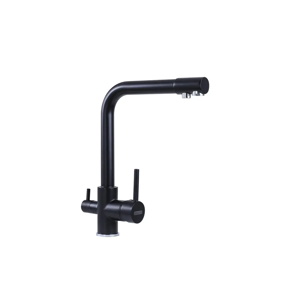Кухонний змішувач під фільтр Platinum чорний KT 14 добре поєднується з всіма сучасними кухонними мийками. Він має поворотний вилив, що полегшує миття посуду та допомагає зберегти чистоту робочого місця.