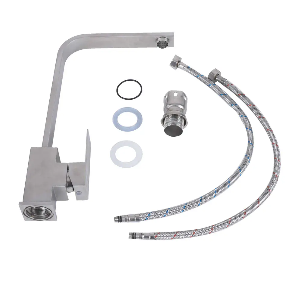 Два шланга длиной 50 см позволяют легко подсоединить смеситель к водопроводу. Комплектация включает шланги, крепеж для смесителя, прокладку и гайки, что упрощает процесс монтажа и обеспечивает надежную фиксацию.